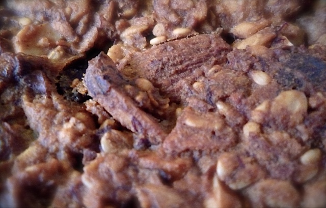 Combine the 2/3 cup of jumbo oats, flour, cinnamon, salt, small seeds, sunflower & pumpkin seeds and dried fruit.  Set aside.