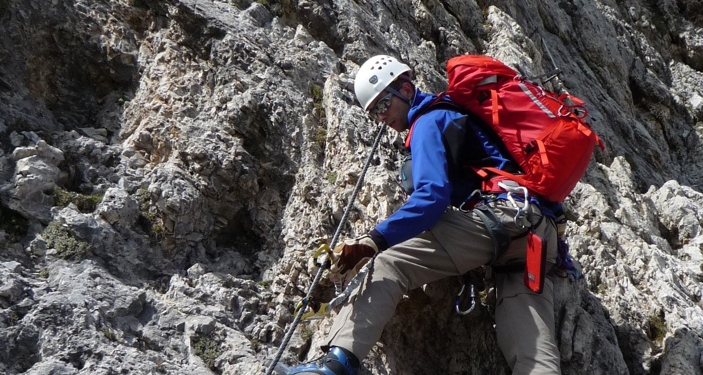 Climbing the via ferrata Piz da Lech.