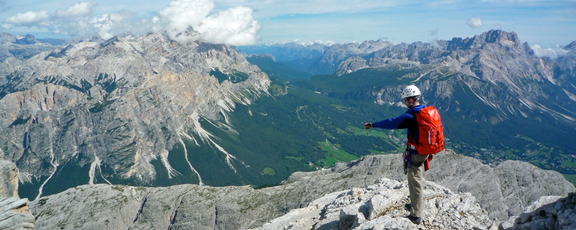 Working out the route on the descent from Tofana di Dentro in the Dolomites, Italy.