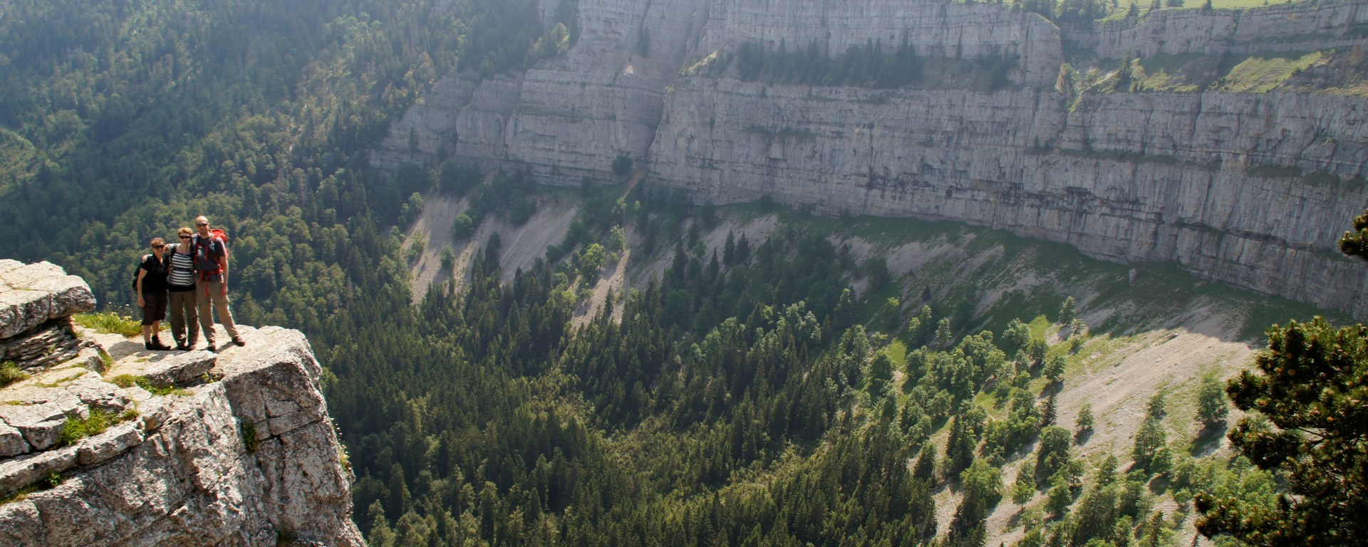 Approach Creux du Van from behind and it’ll surprise you. Walk over Le Soliat from the south and it looks like the rest of the Jura – a pretty landscape of rounded mountains covered in woods and meadows with the odd bit of limestone sticking out of them. But as you walk towards the northern side of the mountain, a crescent moon of rock appears, dropping roughly 150 metres deep and stretching around 1,400 metres wide in-front of you.