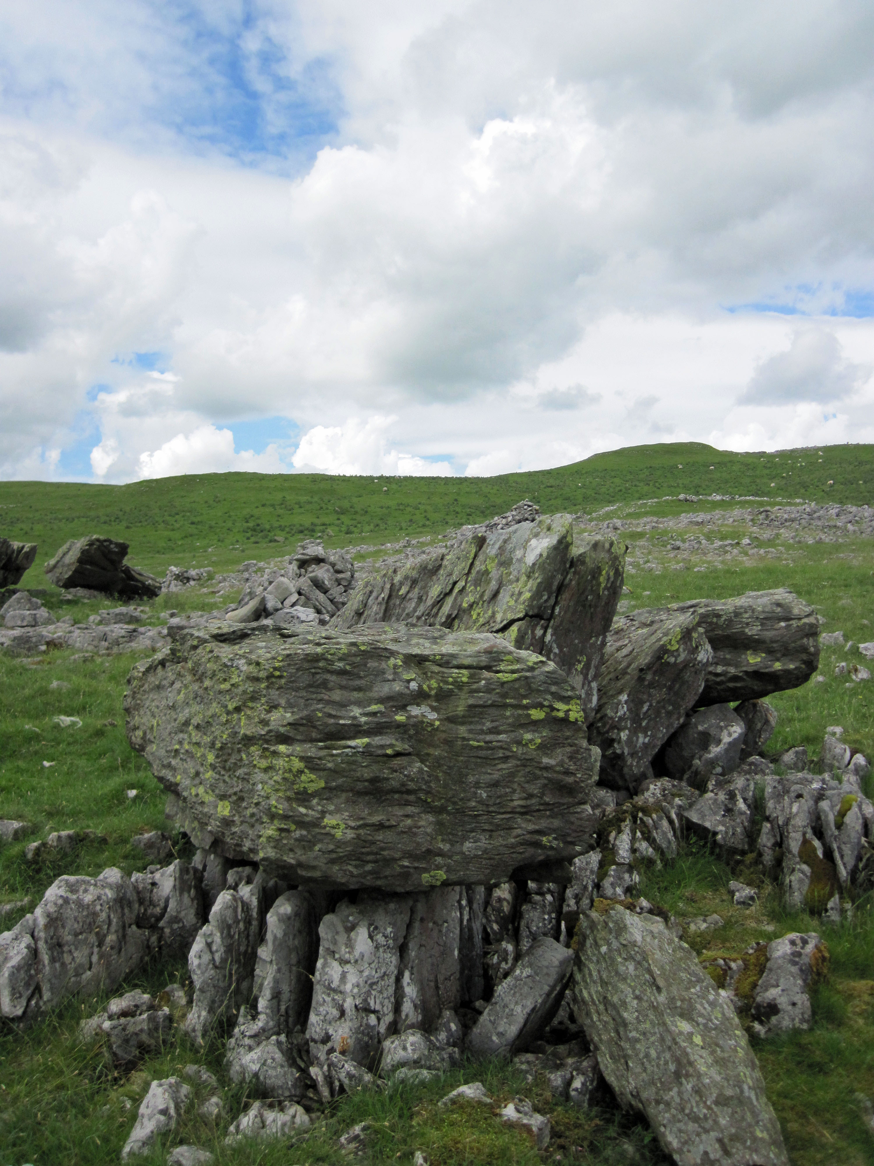 As the glaciers that stripped the land, and exposed the limestone beds that would later become limestone pavement, retreated they left behind rocks that they had carried with them. These pieces of rock were different to the rock in the area where they are left and are known as Norber Erratics. There is a group of them above Robin Proctor’s Scar near Clapham and it is these I walked past last weekend.