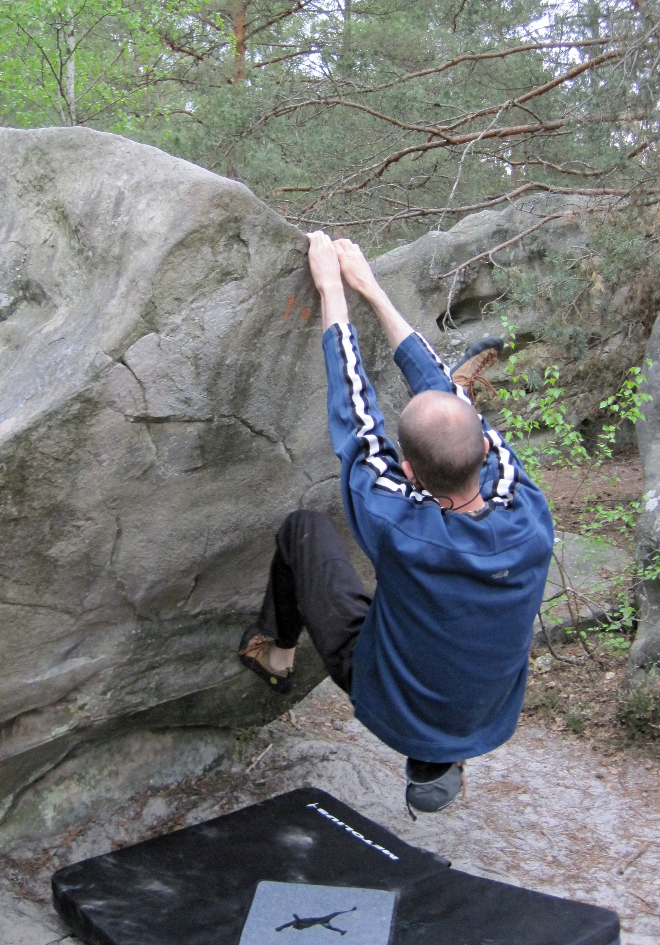 I was unlucky, uninformed and an idiot. It was near the end of our second day of my first bouldering trip to Fontainebleau and I was with a group climbing just a few more problems before it got too dark and late. Some of the group had climbed this tricky problem up the flat front of a split boulder and I wanted to do it too. It was different, a challenge and looked fun. This was partly because completing the problem required a right heel hook and I don’t do heel hooks often. Climbing in the lower grades means that I either don’t need to do them that much or can get away with using different moves. But I wanted to try them now because I want to make the most of my time in the legendary Fontainebleau forest and wanted to do this climb.