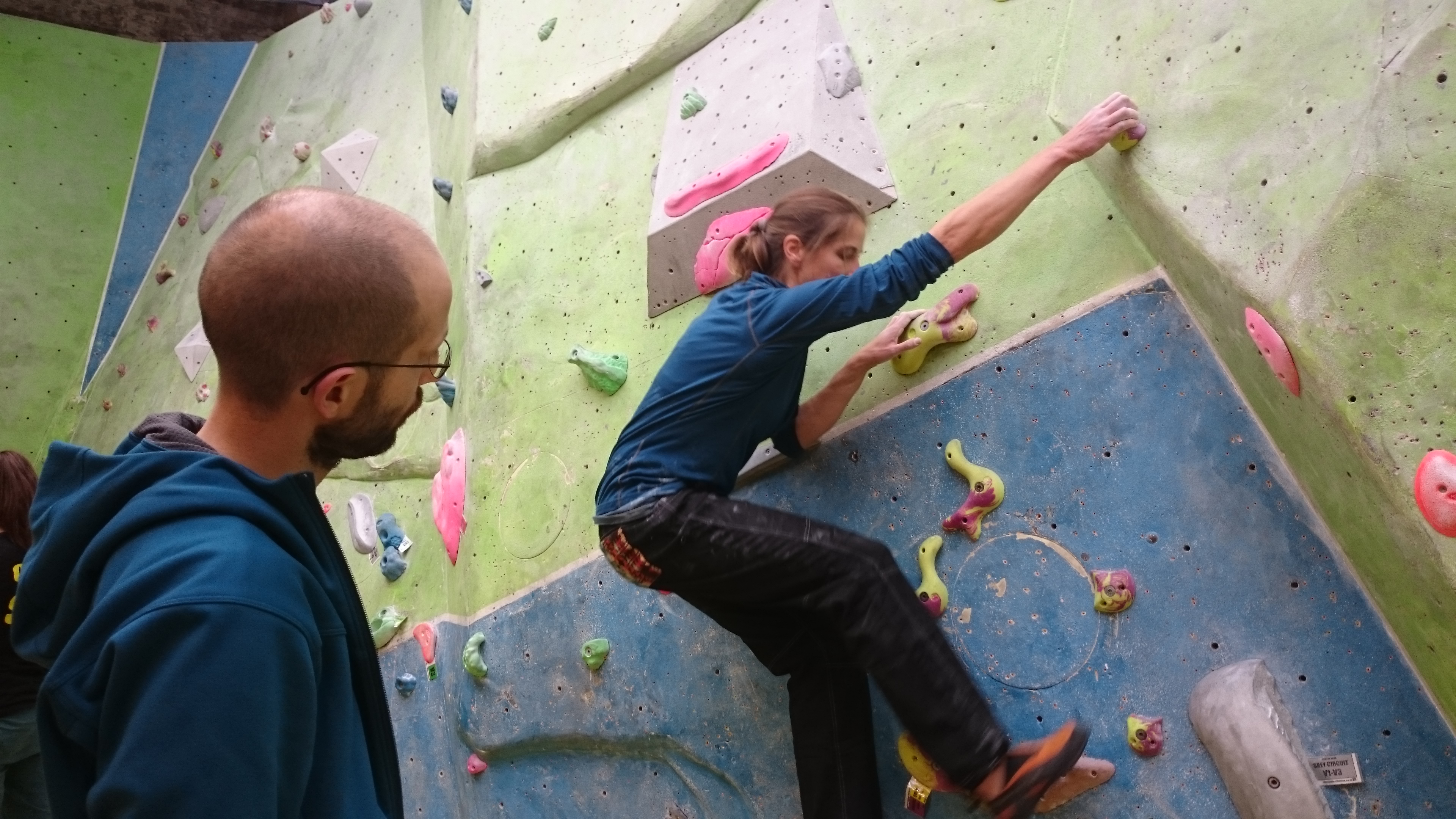 Alice helpfully and patiently took me through the fundamentals of the open-hand grip before offering tips and suggestions as I tried to use it bouldering.