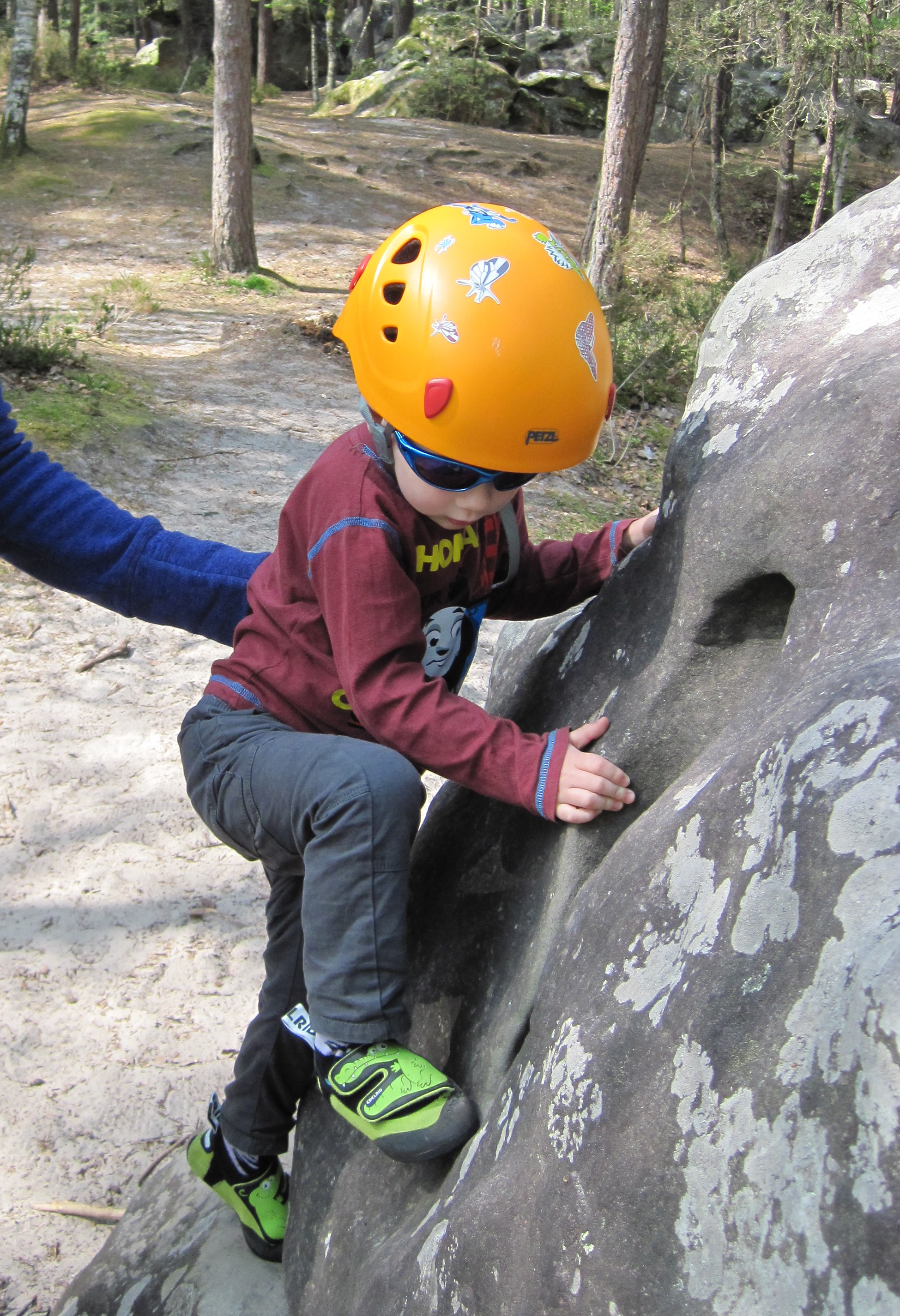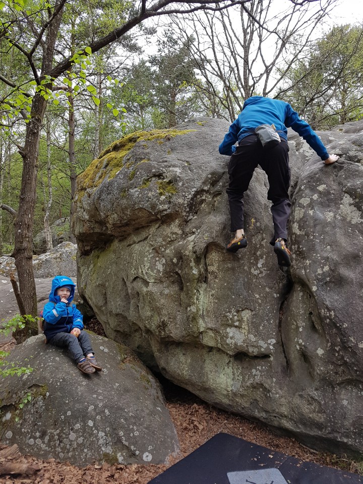 The one real issue we’ve had is trying to ensure that Leo does not get in the way of climbers. We have done our best to teach him that it’s dangerous for him to stand under someone who is bouldering and he understands this to an extent. However, as any parent knows, the problem is that toddlers get caught up in what they are doing and aren’t always attentive to what’s around them. As the ground in Fontainebleau is sometimes uneven and the terrain rocky in places, there is also the possibility of an excited toddler taking a nasty trip or fall. So Valerie or I have needed to follow Leo quite closely as he plays to make sure he’s safe.