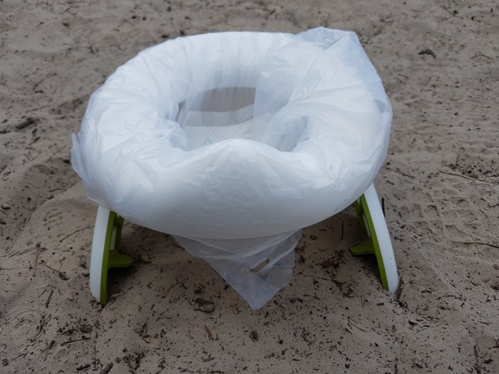 Leo stopped using nappies a while ago and on our last trip we took an OXO Tot 2-in-1 Go Potty. This is essentially a collapsible potty that catches pee and poo in disposable plastic bags with absorbent pads in the bottom. Once the business is done, you simply remove the bag from the potty and tie it up. The bags can then be carried out until you get to a bin. It’s a brilliant product (there are other, similar ones out there) and has worked well on lots of days out.