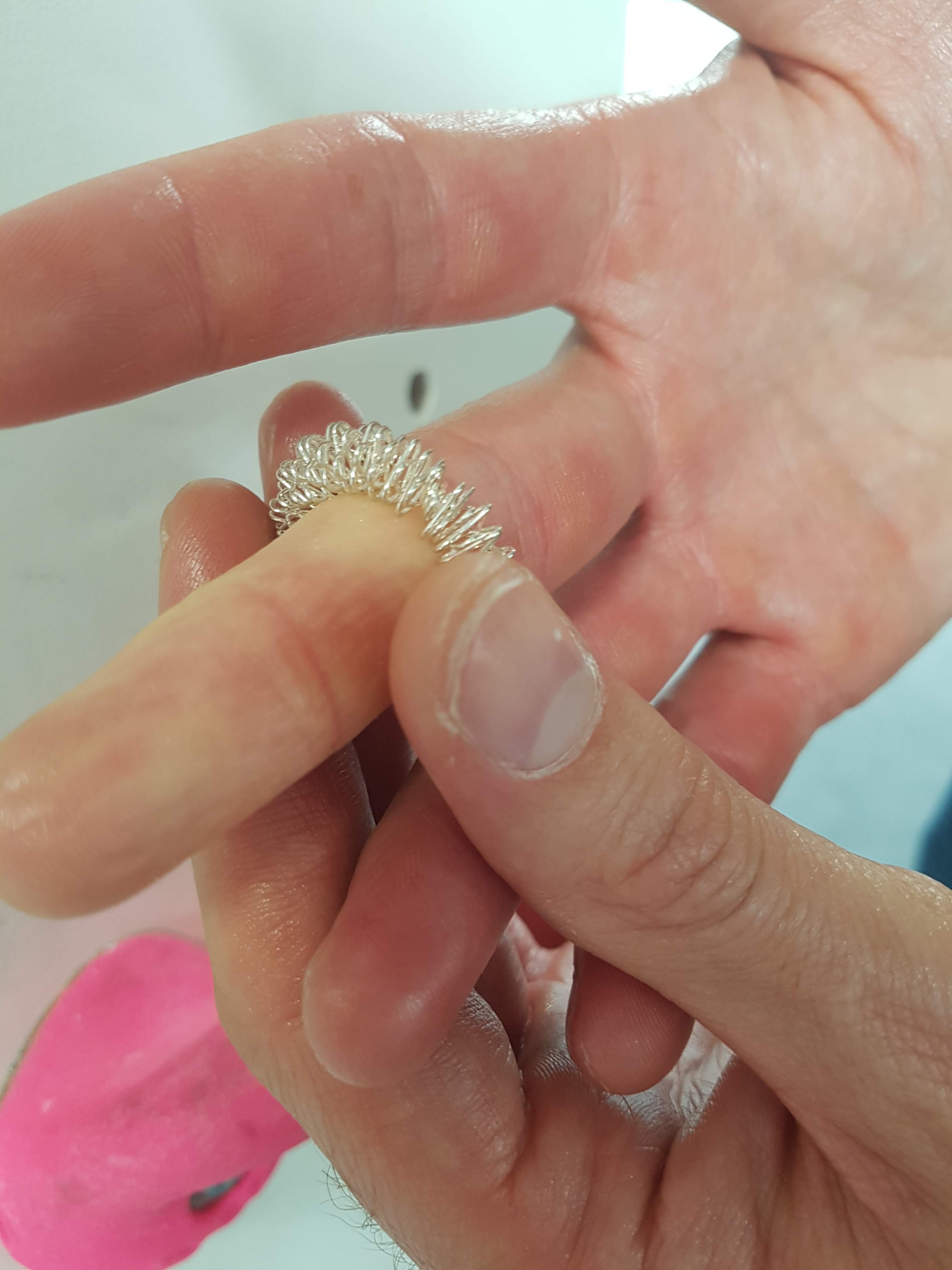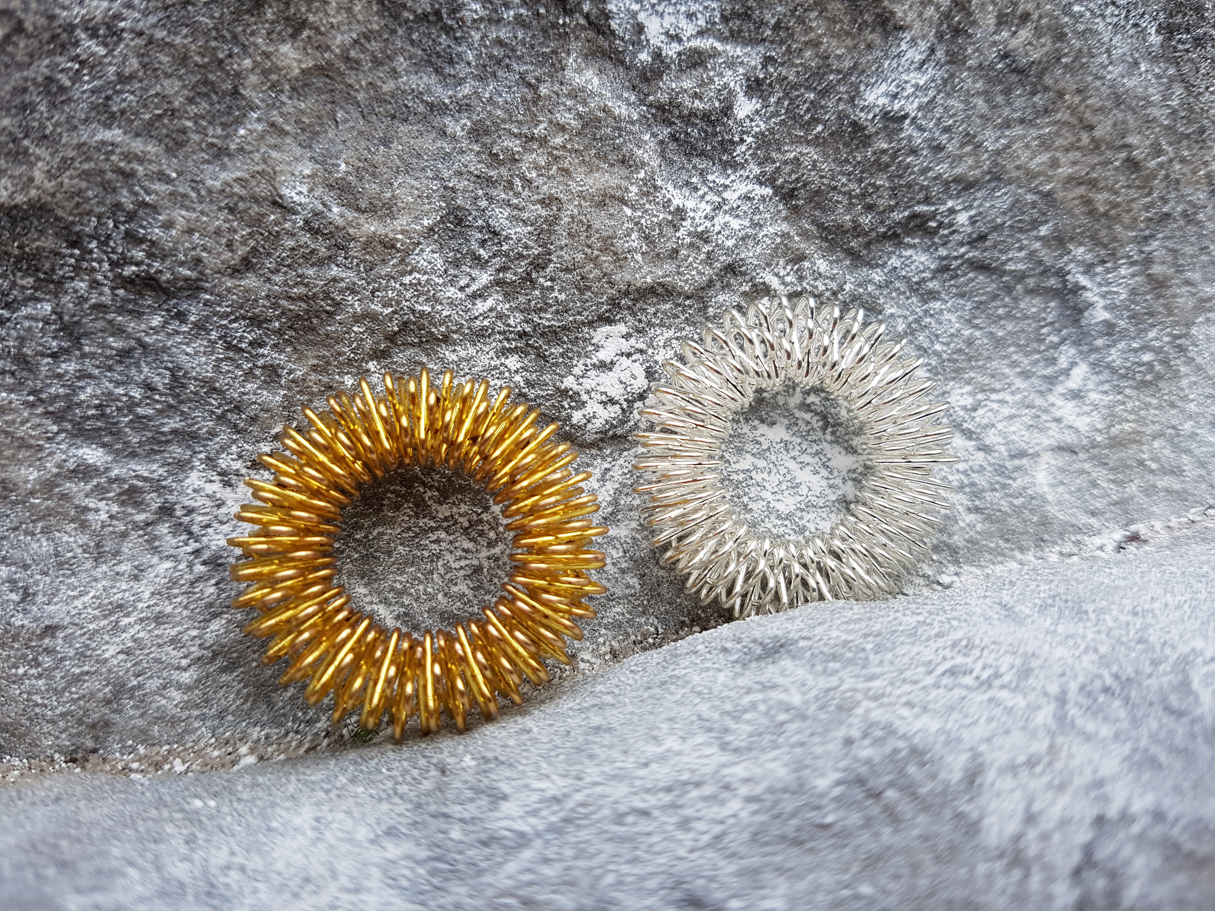 Acupressure rings are essentially a stainless steel wire bent into a circle of triangular shapes. You use an acupressure ring by rolling it up and down each of your fingers. The pressure provided by the ring and the action of the bends in the wire rolling along acts to massage your finger. It’s a deeply weird sensation at first and still a bit weird even when you are more used to it. However, it’s also slightly pleasant and after I’ve finished using an acupressure ring my fingers do have that invigorated feeling you get after a massage.