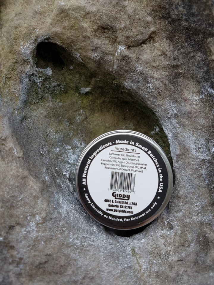 Giddy Joint, Tendon and Muscle Balm aims to help sooth the pain and tenderness you can get from climbing hard. It’s made with natural ingredients and has a kick of menthol. I’ve been trying it out to see if it keeps my hands in good shape.