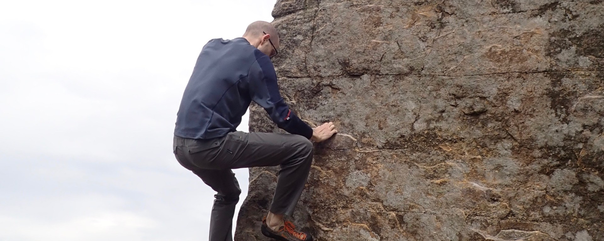 I was certainly the only boulderer there on Saturday morning huddling under an overhang (that was not as overhanging as I wanted in heavy rain and gusty winds). As I pulled on my waterproofs, I optimistically thought I could wait it out as rain hadn’t been forecast. But the rain kept coming, and I decided going gear shopping was a better use of my time. I felt slightly disappointed as I trudged back to the car.