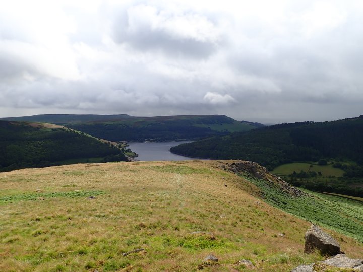 Crook Hill has two summits, with gritstone outcrops on each top. From these tops, you get views over the Reservoir, the fields and woods of the Derwent Valley and Woodlands Valley, and across to Kinder Scout, Derwent Edge, the Wheel Stones, Bamford Edge and Stanage Edge. It’s a stunning sweep of a view.