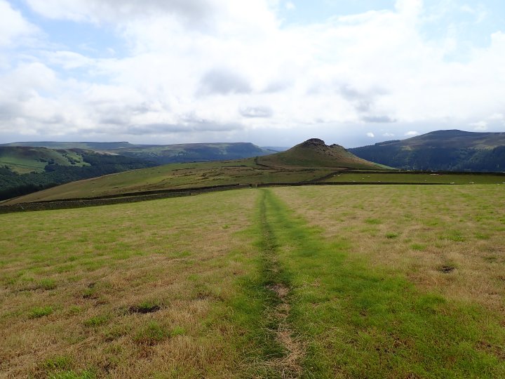 It rained on my walk up, but as I got within a few metres of the southerly top of Crook Hill, the sun suddenly lit up the summit. It was a great way to arrive at such a lovely summit. I had expected a rounded, uninteresting top, I was surprised to find that the summit was a grassy spine with wedges of rough gritstone protruding from it. After enjoying the view for a bit, I had some fun unnecessarily scrambling down the gritstone. It was then an easy walk to the col and on to the next top