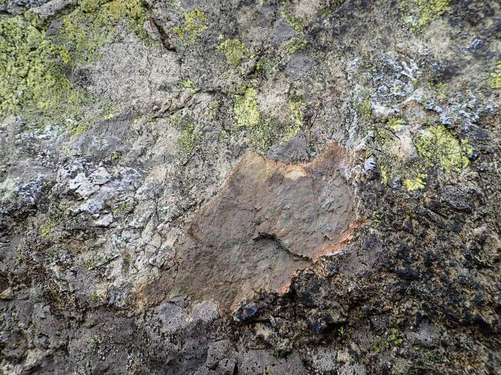 The one problem that I just could not work out was Jacko Slab. The guidebook described it as a “fine problem” and gave it a star.  However, despite it being just a 3+, I couldn’t get more than a couple of moves off the ground. It was one of those problems where I got to a certain point and then simply couldn’t see what to do.  I kept feeling that, at the grade, there ought to be another hold somewhere.  What there was instead was a gentle bump/raised area on the slab with chalk across the top edge.  In the middle of this bump was an area of unweathered rock where a piece had broken off the boulder. After trying all sorts of different combinations of moves, I decided this fresh bit of rock was where the crucial hold had been.  This might not be entirely true – but it was a good way of making sure I didn’t feel frustrated about not being able to get up something.