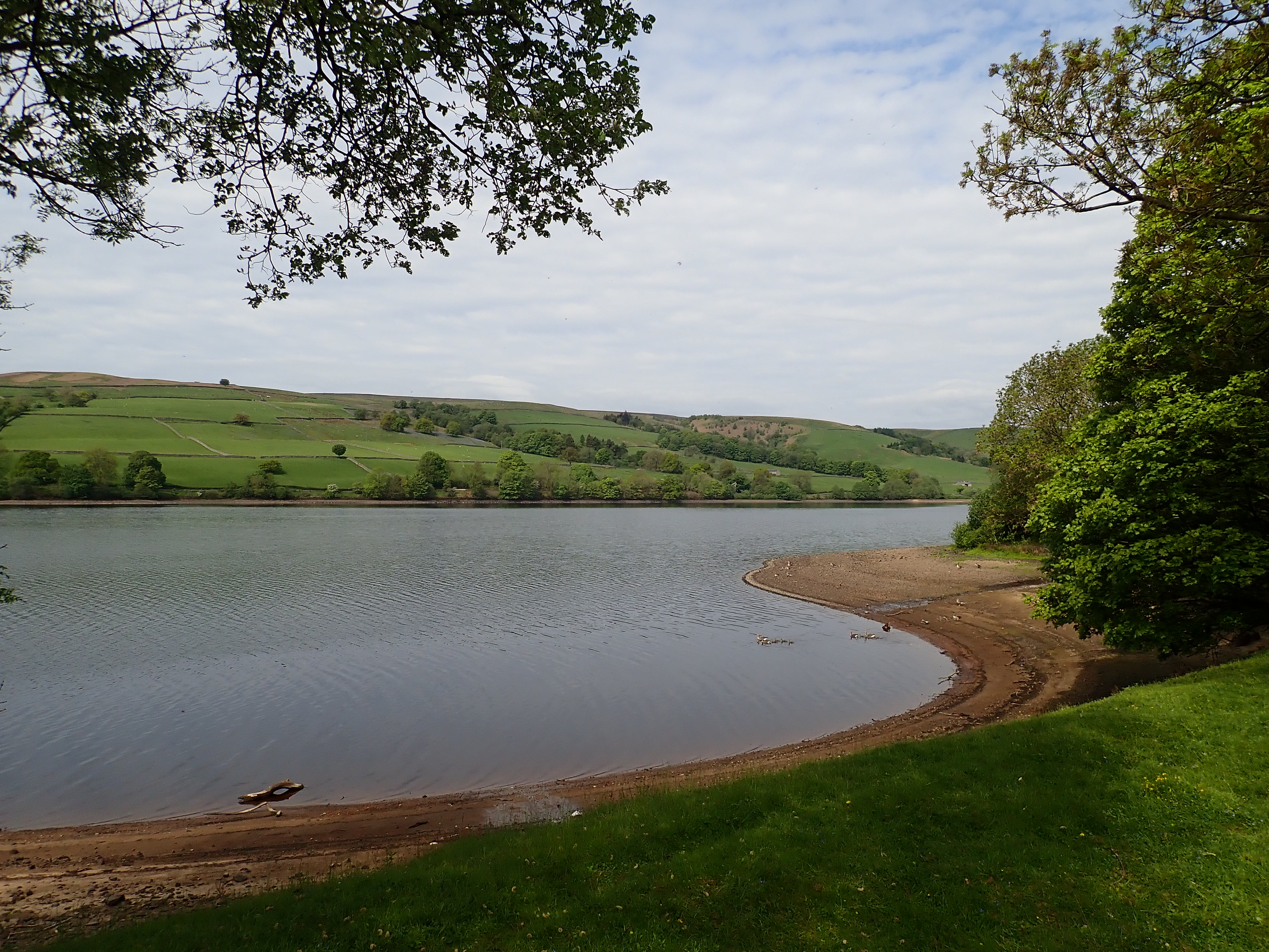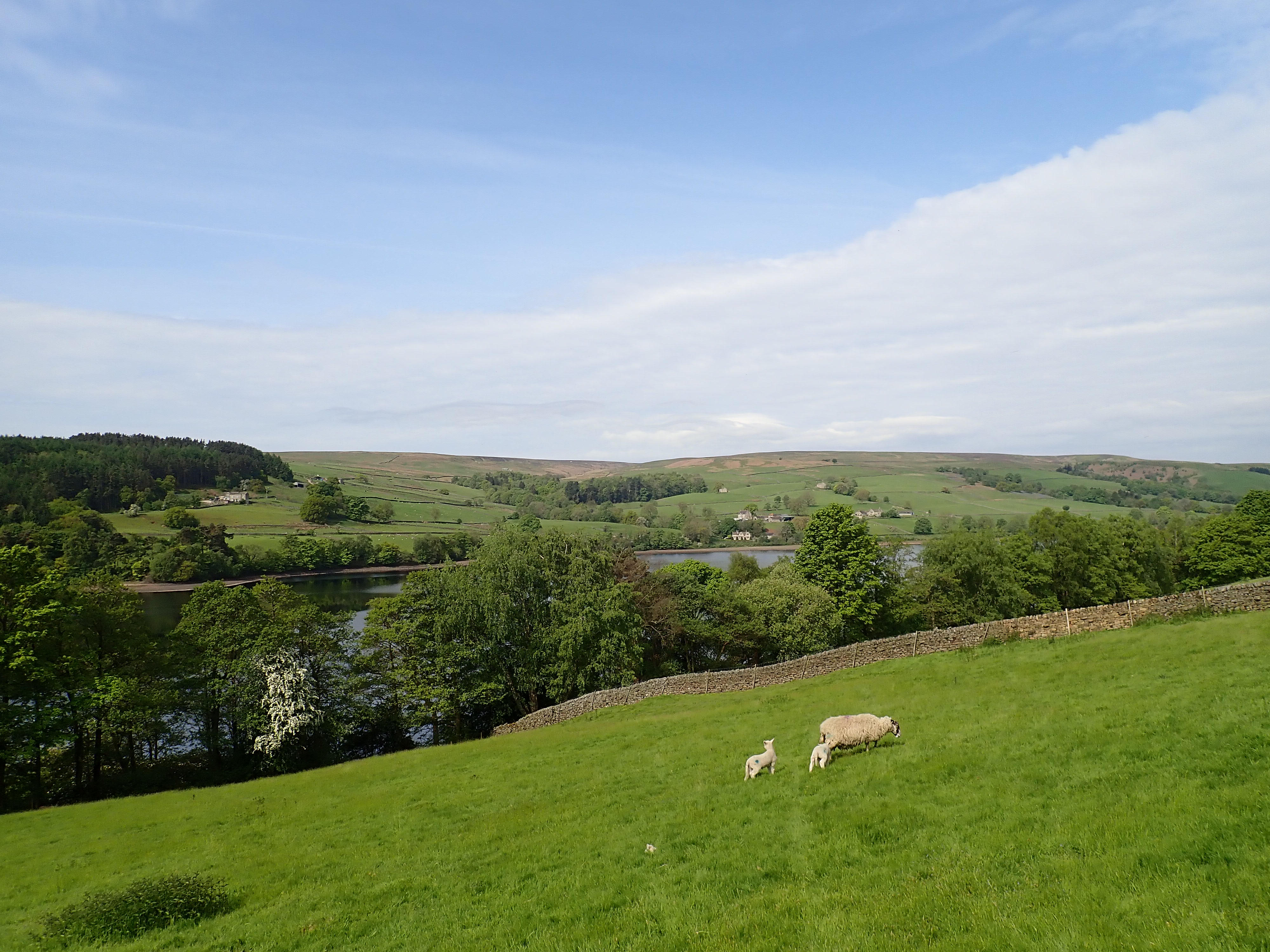 After rejoining the Nidd, I walked through meadows and woods before a slight climb took me past the stone dam of Gouthwaite Reservoir. The climb carried on to a lane and then gently descended to follow the reservoir for the rest of its length. Gouthwaite Reservoir is a compensation reservoir, meaning that its role is to maintain the flow of the Nidd in periods of dry or wet weather. It is also a nature reserve and Site of Special Scientific Interest. It’s a lovely place – nestled in the dale, fringed by trees, grasses and flowers, with geese and goslings on the water.