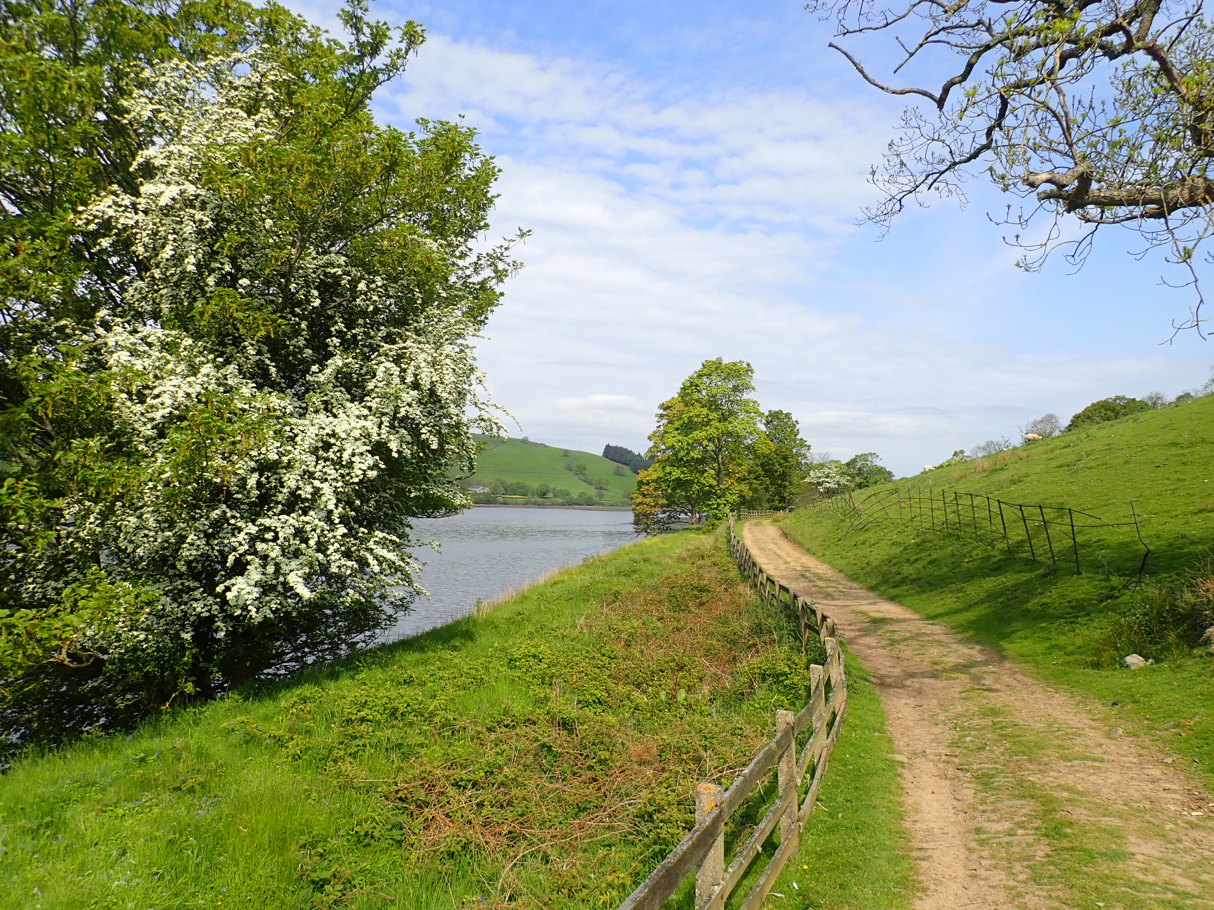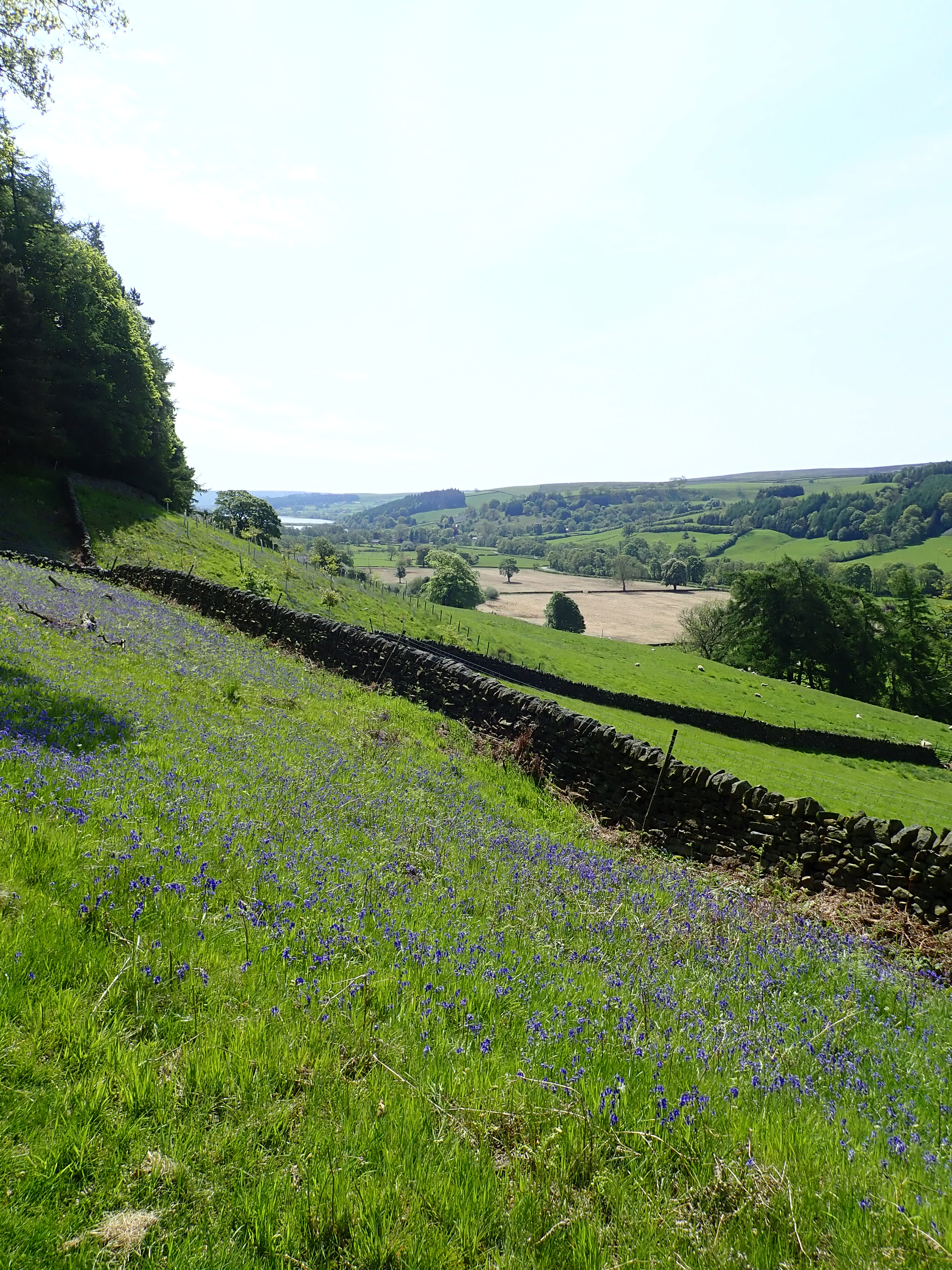 I could see as I’d been walking along the reservoir what looked like fields of light blue on the other side of the dale. I’d guessed that they might be bluebells but thought it strange that they would grow out in the open instead of in the cover of a wood. It was only after I’d walked beyond Bouthwaite that I came across a field on this side of the dale filled with bluebells standing proud in the bright sunshine. I simply did not know that bluebells could grow like that. There were even more on the other side of a wood on Longside (and the wood itself was full of bluebells too). An amazing thing about this walk was the sheer number of flowers I saw – more than I’ve ever seen on a walk in the UK.