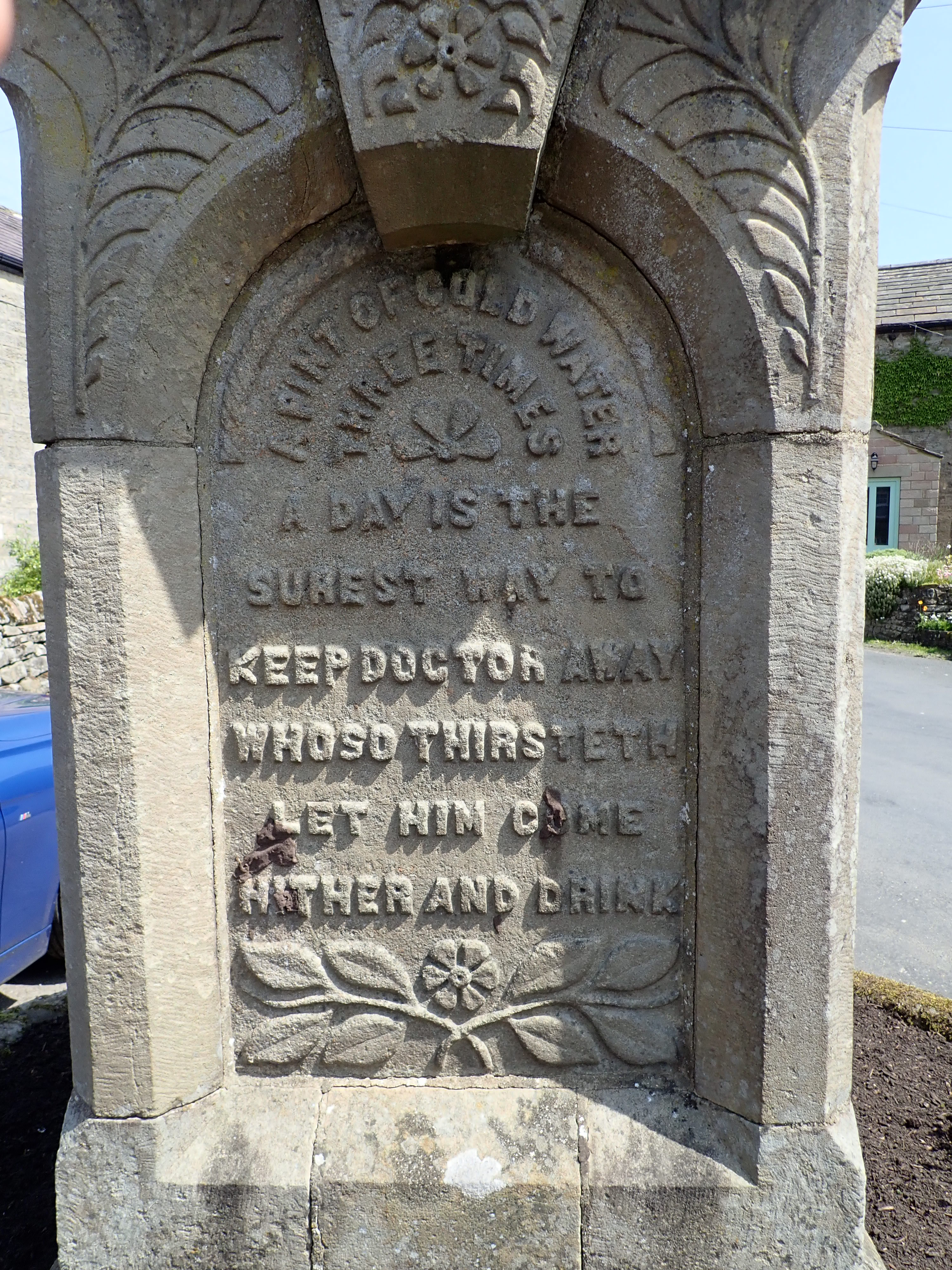 After a few more fields and a bit of road walking, I reached Lofthouse. I was pleased to make it with plenty of time before my bus was due. I used the spare time to look around the village, and liked reading the inscriptions singing the praises of cold water on the war memorial water fountain in the village’s centre. I then ate my lunch while sitting on a bench waiting for my bus. To my surprise, the bus was precisely on time. I enjoyed the views and listening to the bus driver make curt comments about other drivers not moving over enough as the bus zipped me back to Pateley Bridge. It was a great start to the Nidderdale Way.
