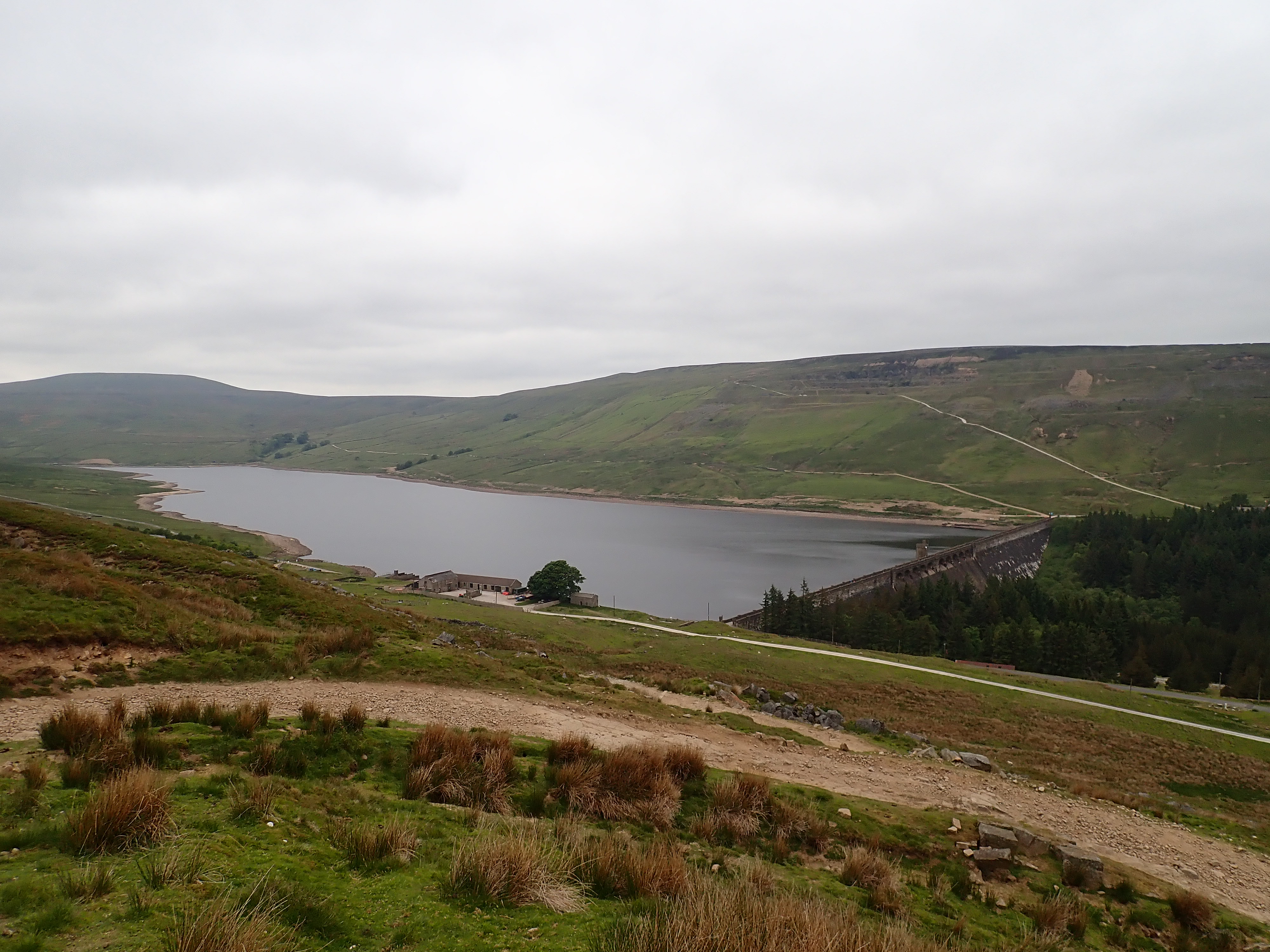 Scar House Reservoir was built between 1921 and 1936 by the Bradford Corporation to supply Bradford with water. At 233ft (71 metres) the dam was the highest in the UK at the time. The dam used around one million tons of concrete and stone, and you can see where this stone was quarried in the scooped scars on the edge of the moors on either side of the dam.
