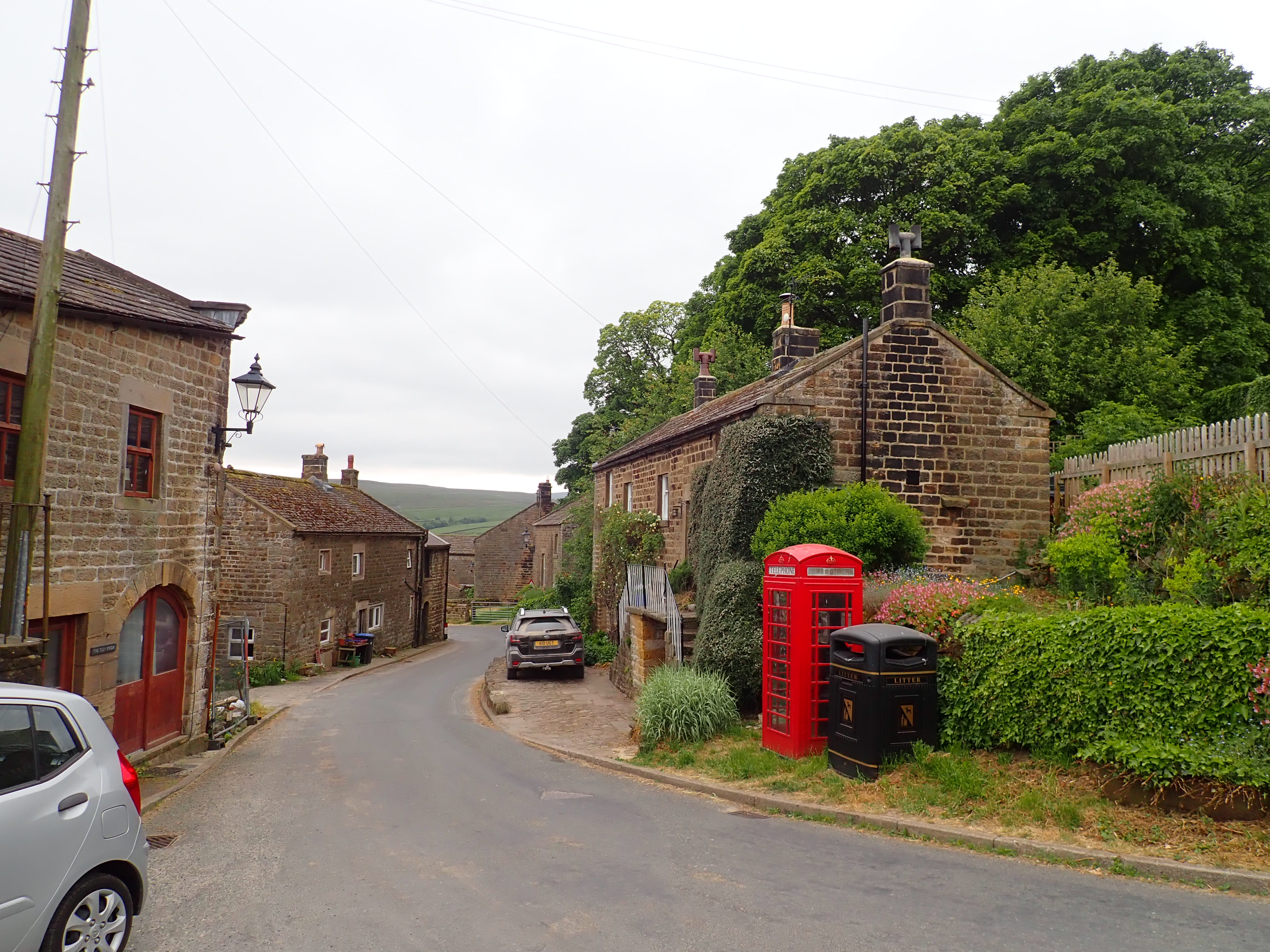I headed back to the Nidderdale Way and turned away from the reservoir to follow a track up onto the moor. This track runs for about two and a half miles (just under 4km) to Middlesmoor. It first climbs steeply past rocks and a disused quarry before a gentle uphill to the high point of the Nidderdale Way at 1,425ft (434m). It was then a relaxing and very gradual descent to Middlesmoor, with views across the moor and to Gouthwaite Reservoir.Middlesmoor is the highest village in Nidderdale and there are stunning views down the dale from the churchyard of St Chad’s. After enjoying the view and a snack, I headed down the foothpath by the churchyard to then walk across meadows and through a mucky Halfway House farm to return to Lofthouse.