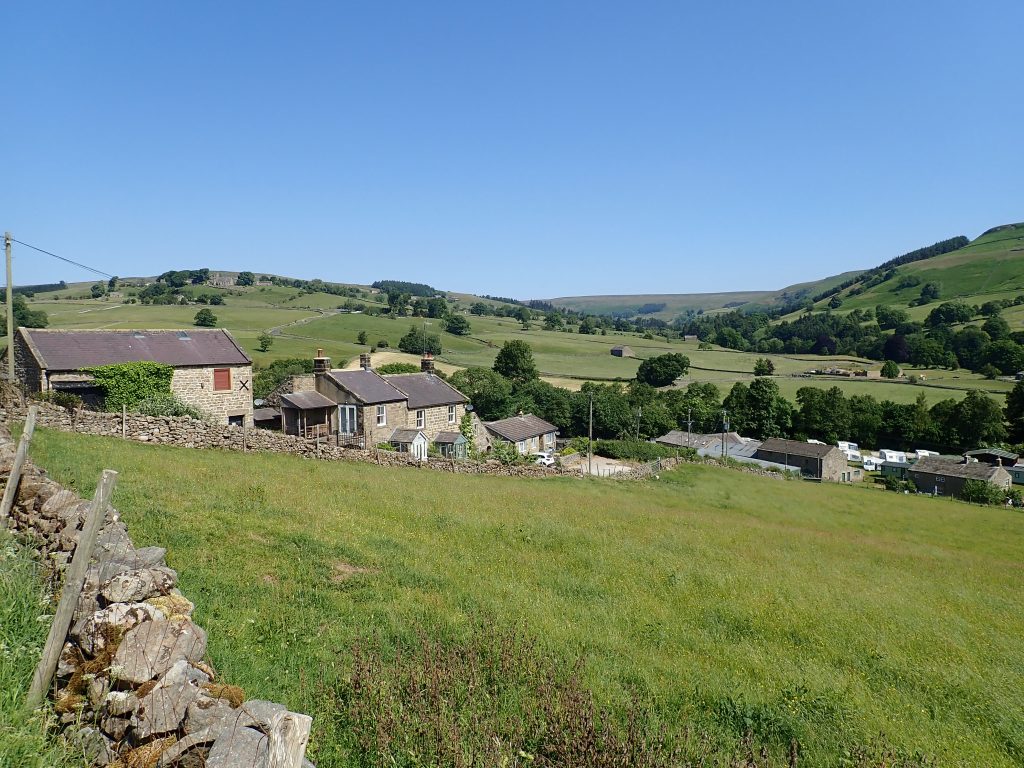 The cottages of Stud Fold Bank and Studfold Bank Farm. Middlesmoor is on the hill in the distance on the left.
