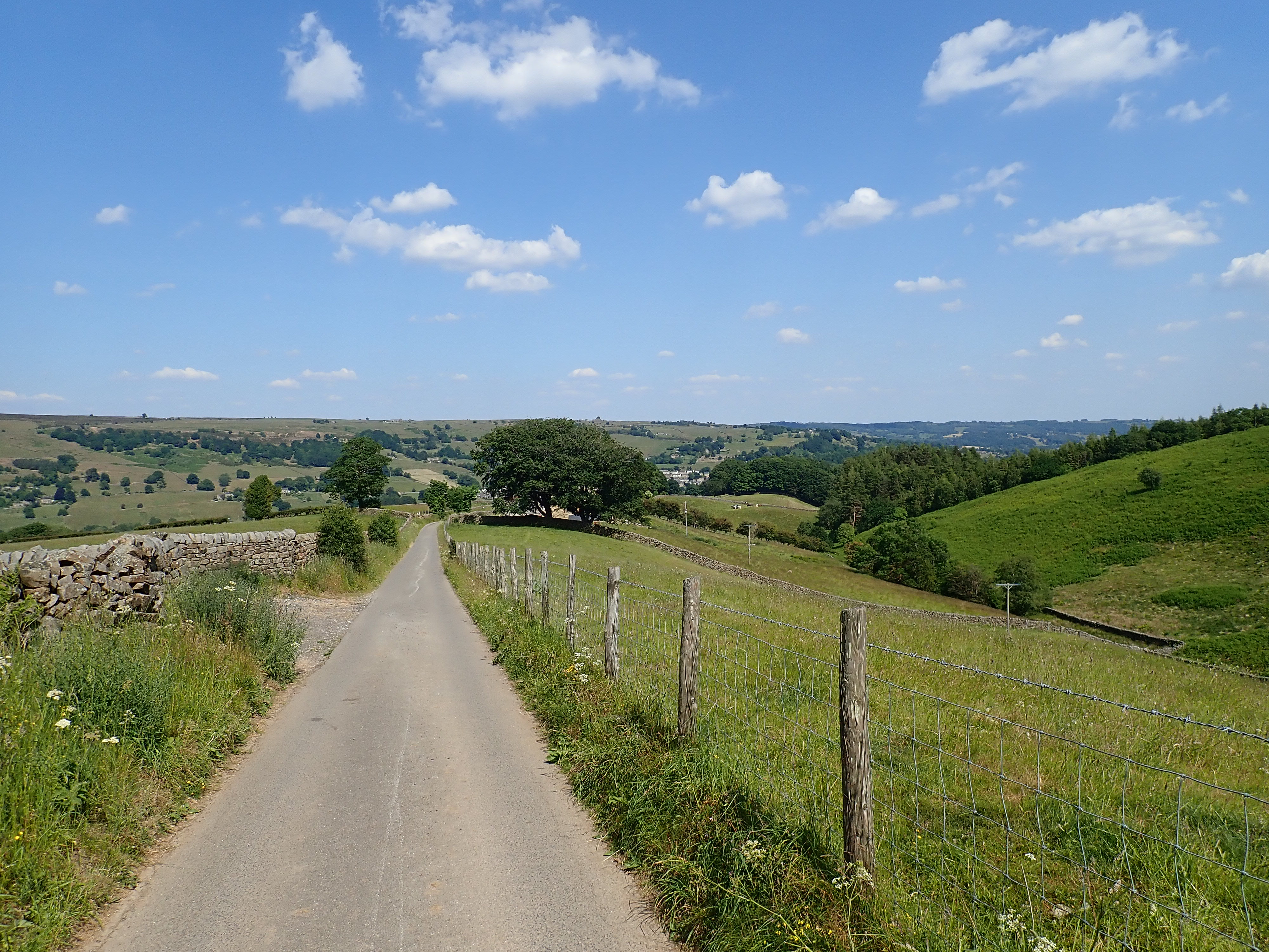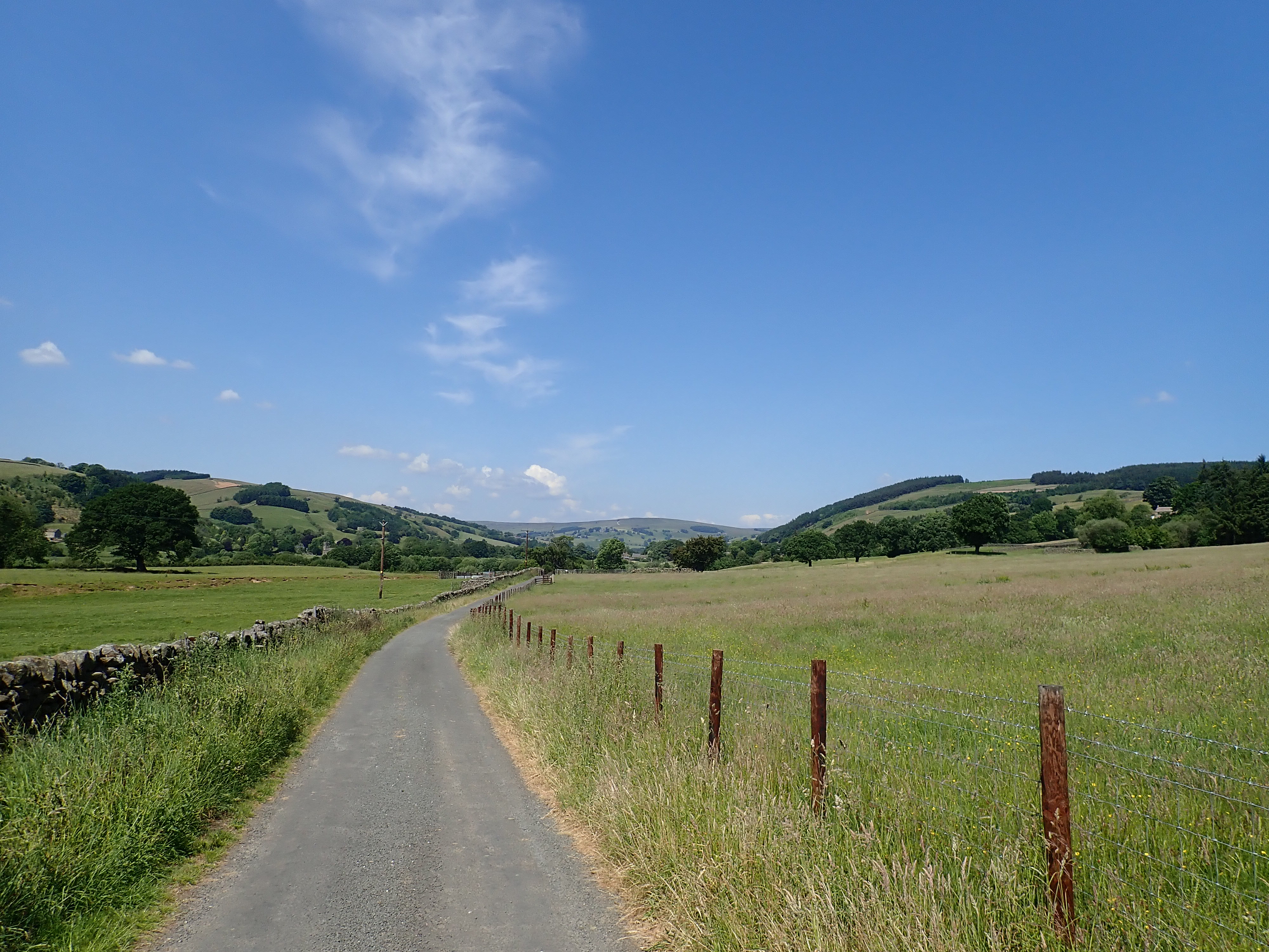 The mines are a fascinating, beautiful, and otherworldly places among the green hills. The Nidderdale Way wound through their spoil heaps, past the Prosperous and Providence shafts, to the crest of a ridge, then followed a track downhill to the valley of Brandstone Beck. After crossing the Beck by a stone bridge, the lane gently climbs to another ridge. I then followed this lane as the views of the countryside around expanded and Pateley Bridge gradually got closer. The lane passed some expensive-looking homes near Eagle Hall, before stopping at the B6265. A few minutes after crossing this busy road, I was in the village of Bewerley and half-way to completing the Nidderdale Way. Feeling good about how I had done, I walked the ten minutes to Pateley Bridge for an iced mocha and my trip home.