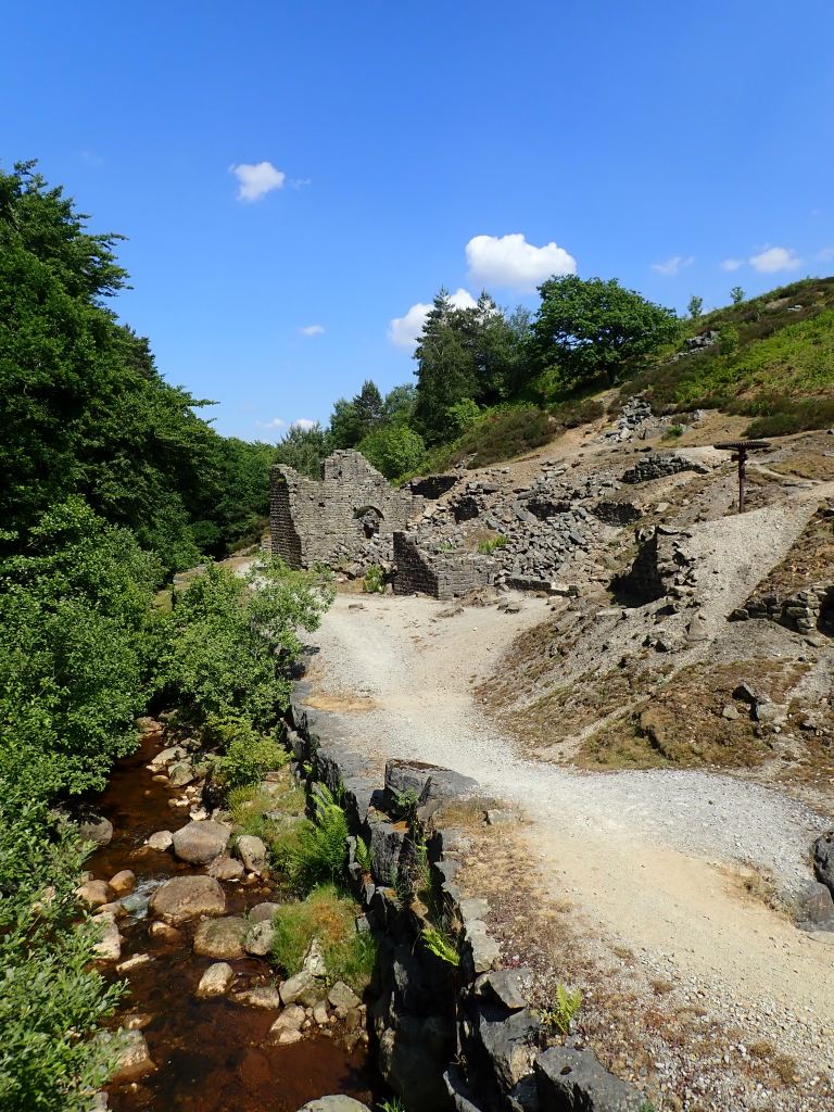 The track steadily climbed until I left it to go down the side of the valley to a wooden bridge. This took me over the beck and to the remains of the Prosperous and Providence lead mines.