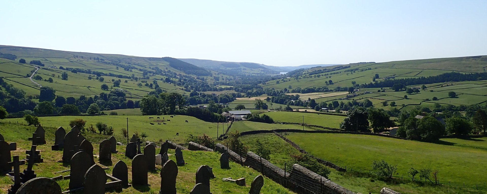 The view of Nidderdale from St Chad’s Church in Middlesmoor. Gouthwaite Reservoir is visible in the distance.