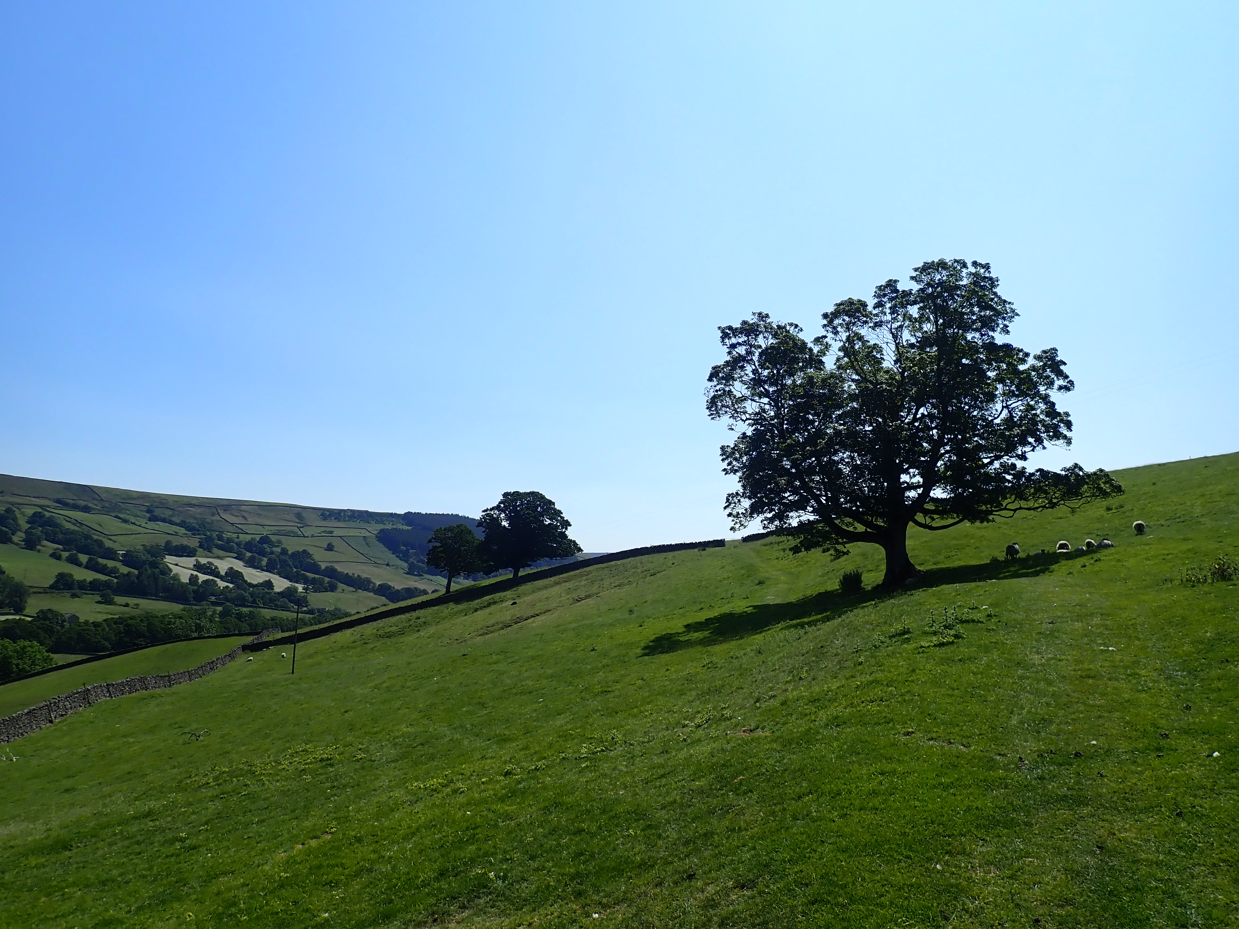 The Nidderdale Way then passes through Studfold Farm activity centre, before climbing up the side of the valley and traversing the West side of the dale to the village of Ramsgill. This was a pleasant walk of pastures with drystone walls, barns, and sporadic trees under which sheep sheltered from the sun.