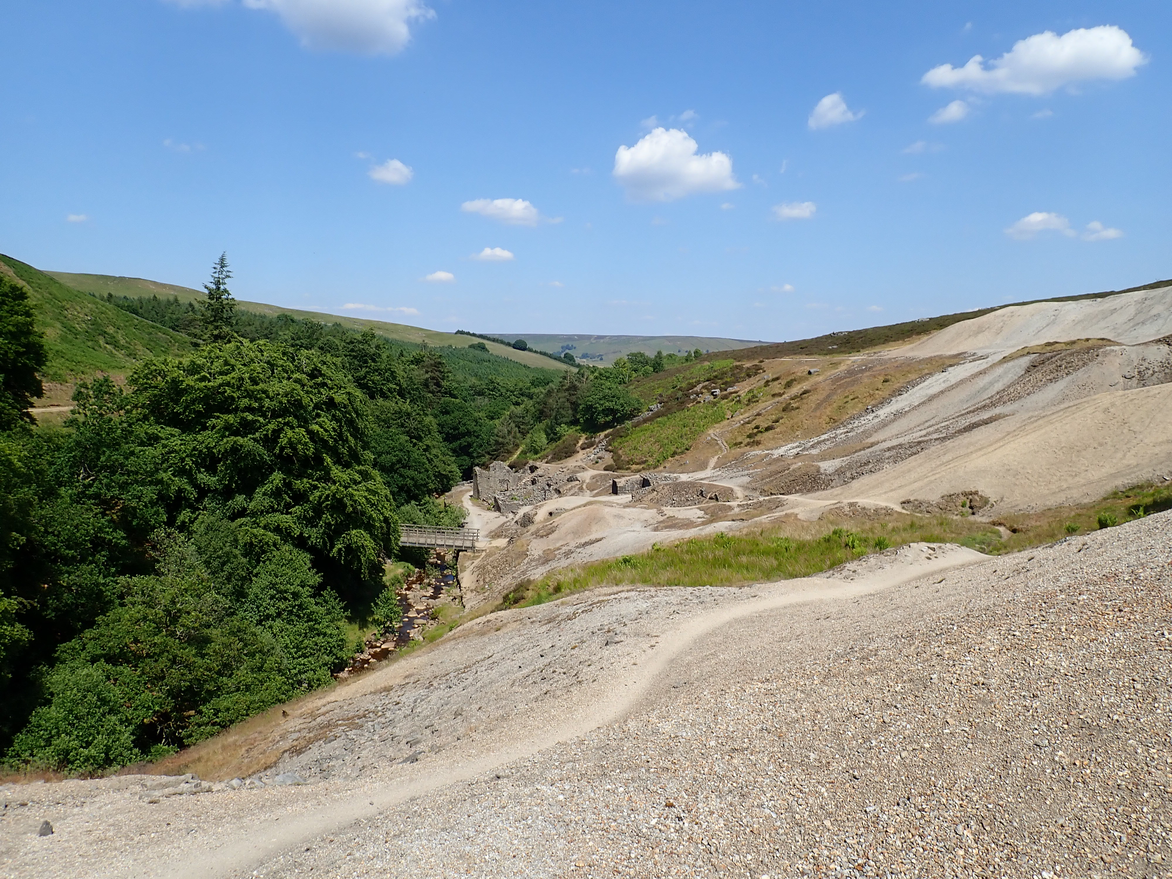 The track steadily climbed until I left it to go down the side of the valley to a wooden bridge. This took me over the beck and to the remains of the Prosperous and Providence lead mines.
