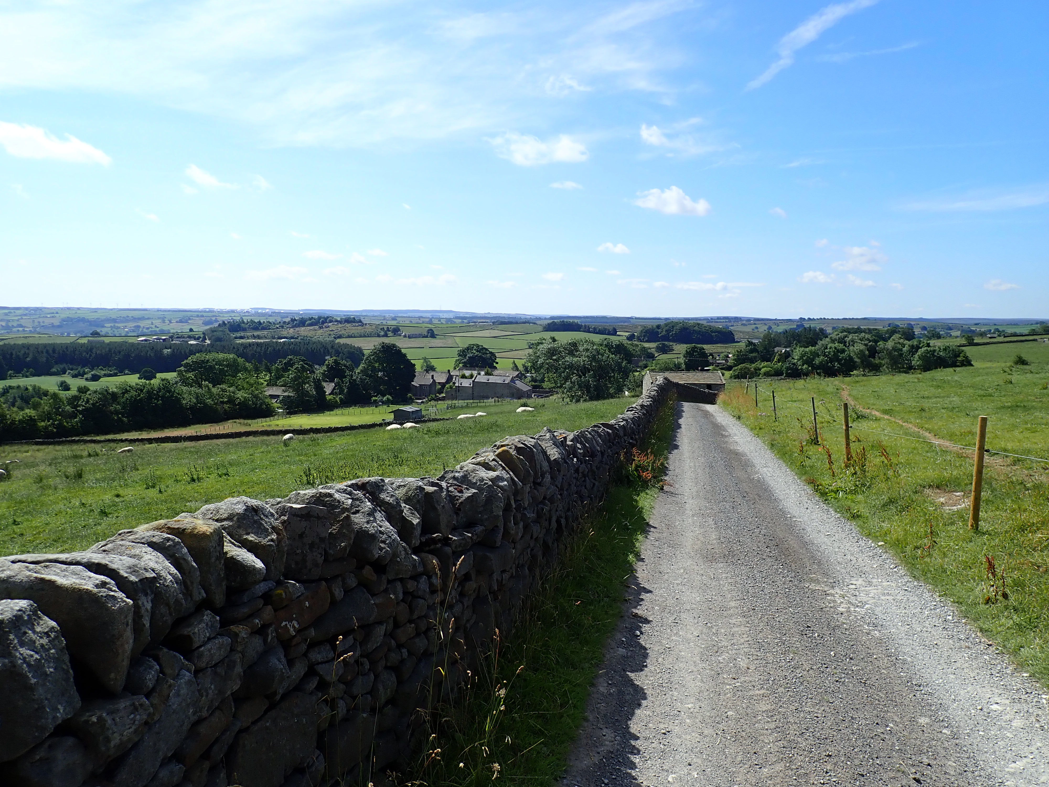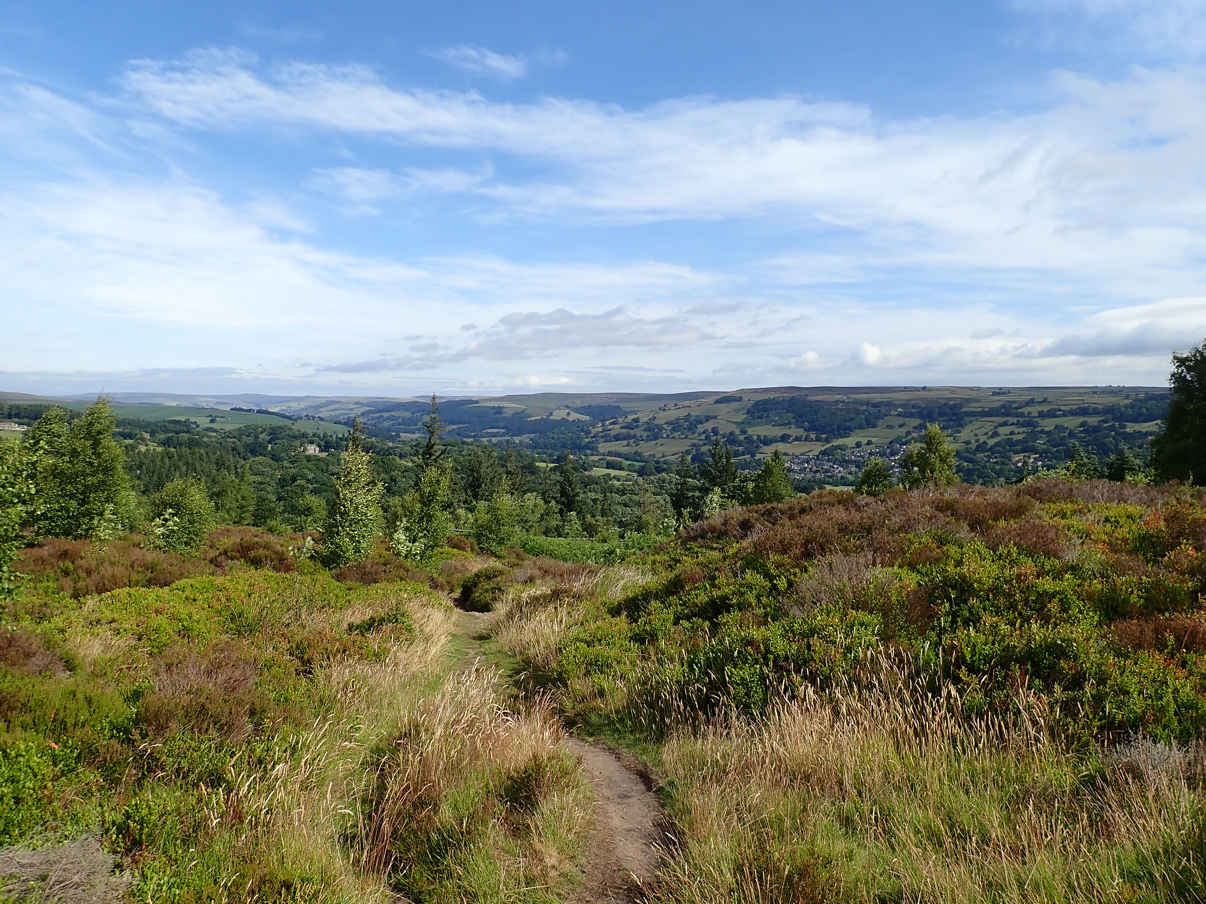 Looking back along the Nidderdale way from Nought Moor, with Pateley Bridge in the distance.