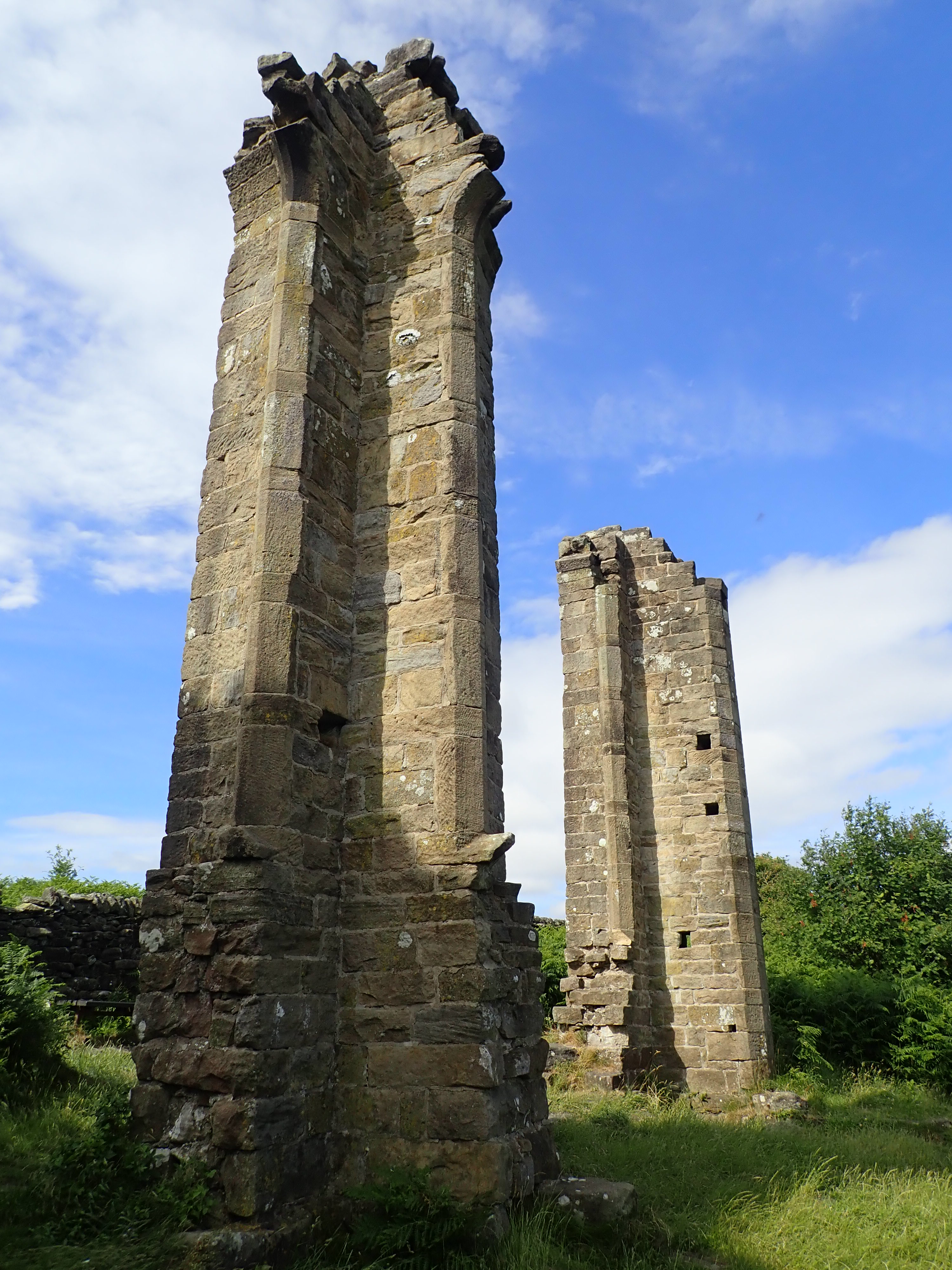 Yorke’s Folly (also known as the Two Stoops or The Stoops) are a pair of stone pillars that sit proud above Guisecliff. They are designed to look like the ruins of an arched window, as if a great church had once dominated the skyline. The reality is that this folly was built in the late 18th century at the bequest of John Yorke, a member of a wealthy local family. The construction of the folly seems to have served two purposes. It provided an interesting and attention-grabbing monument to see from Yorke’s home in Bewerley, and it gave work to unemployed local miners who had been hit hard by a recession in the mining industry. Standing by Yorke’s Folly, I wondered if these men had worked at the Prosperous and Providence lead mines that I had visited on stage 3 of the Nidderdale Way.
