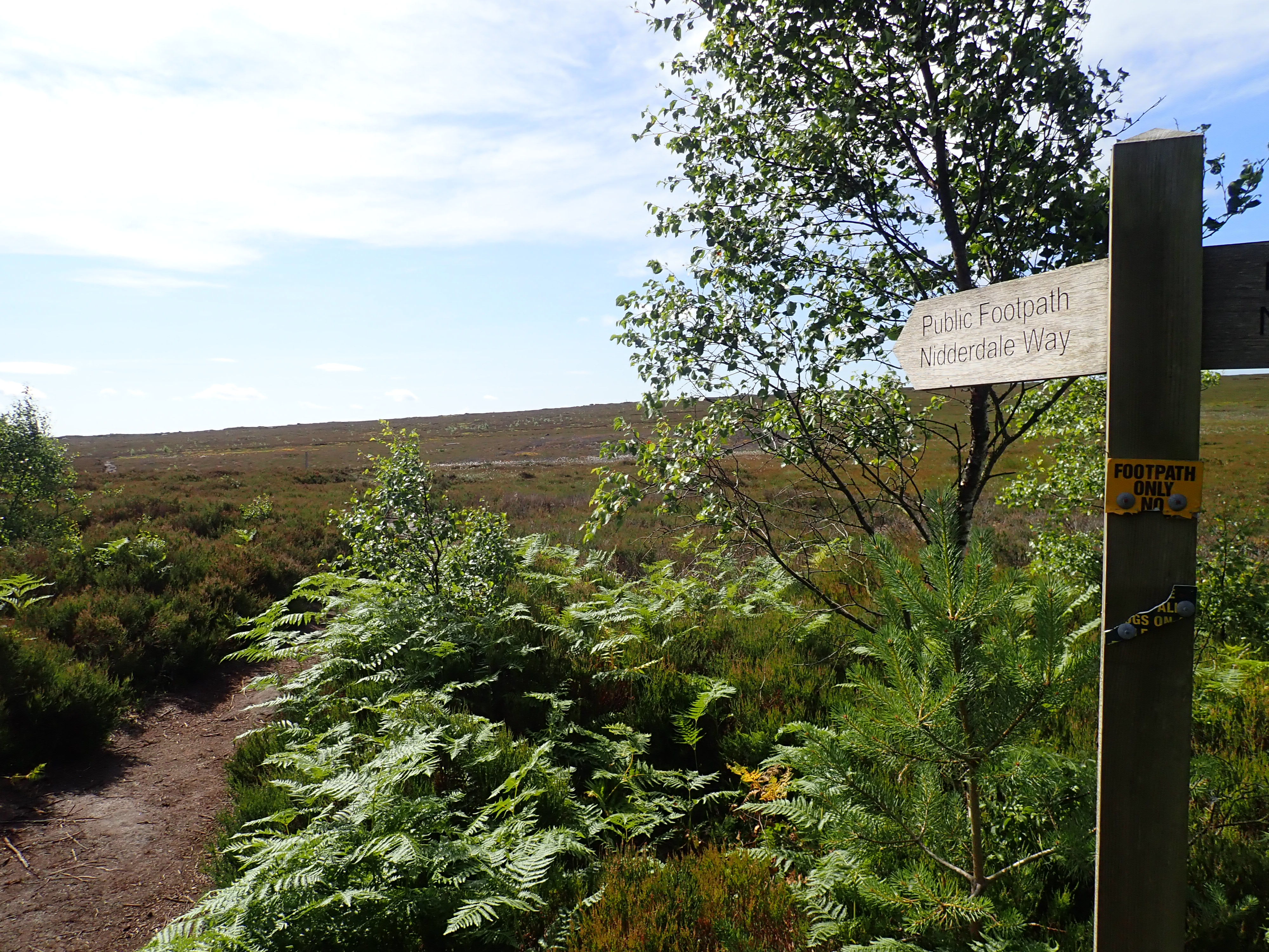 The two columns are a fantastic sight and are a good spot to admire a great view of Nidderdale. After stopping there for a while, I carried on following the top of Guisecliff until the Nidderdale Way struck out across the moor towards the communications mast at one end of the crags. From the mast there are brilliant views of Brimham Rocks on the other side of the dale, down the dale, and towards the giant golf balls of Menwith Hill. The Nidderdale Way then follows a well-maintained track southward along the edge of the moor, before descending to the hamlet of Heyshaw. It’s then a walk across farmland down into the dale to meet up with the River Nidd at Dacre Banks.