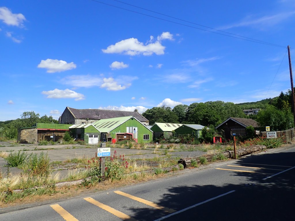 The disused Nidd Valley Sawmills on the bank of the River Nidd in Dacre Banks.