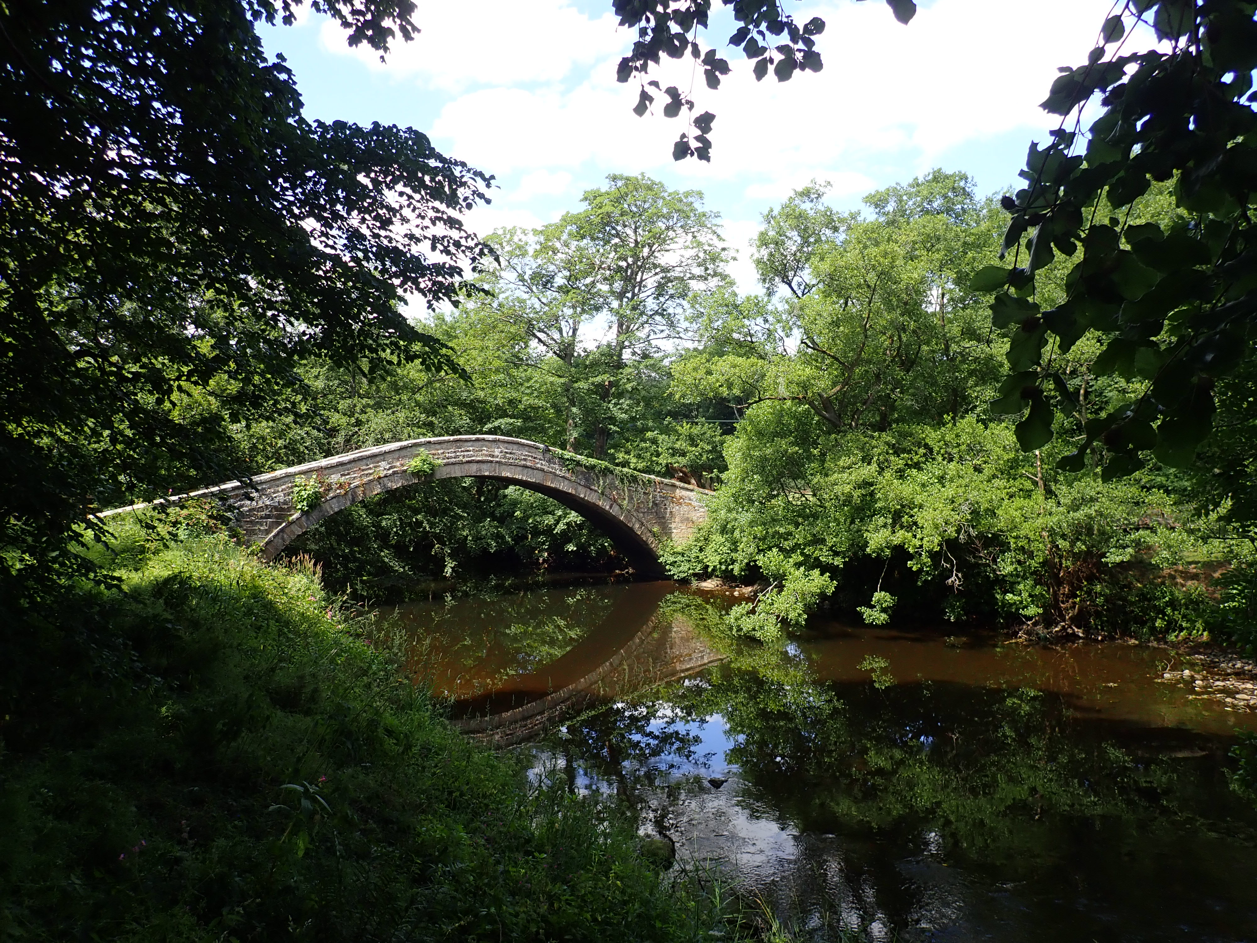 Spanning the Nidd at the point where the Nidderdale Way re-joins it is New Bridge. It’s an elegant stone bridge paved with river stones. New Bridge’s name might now seem like a misnomer, considering it was built in 1822. However, the name does make sense when you realise that it’s likely that New Bridge was constructed using stone from another bridge that was built in 1615 on the packhorse route from Otley to Ripon and which stood 25 metres upstream. What I have not been able to find out is why people went to the notable trouble of demolishing the original bridge and moving it such a short distance.