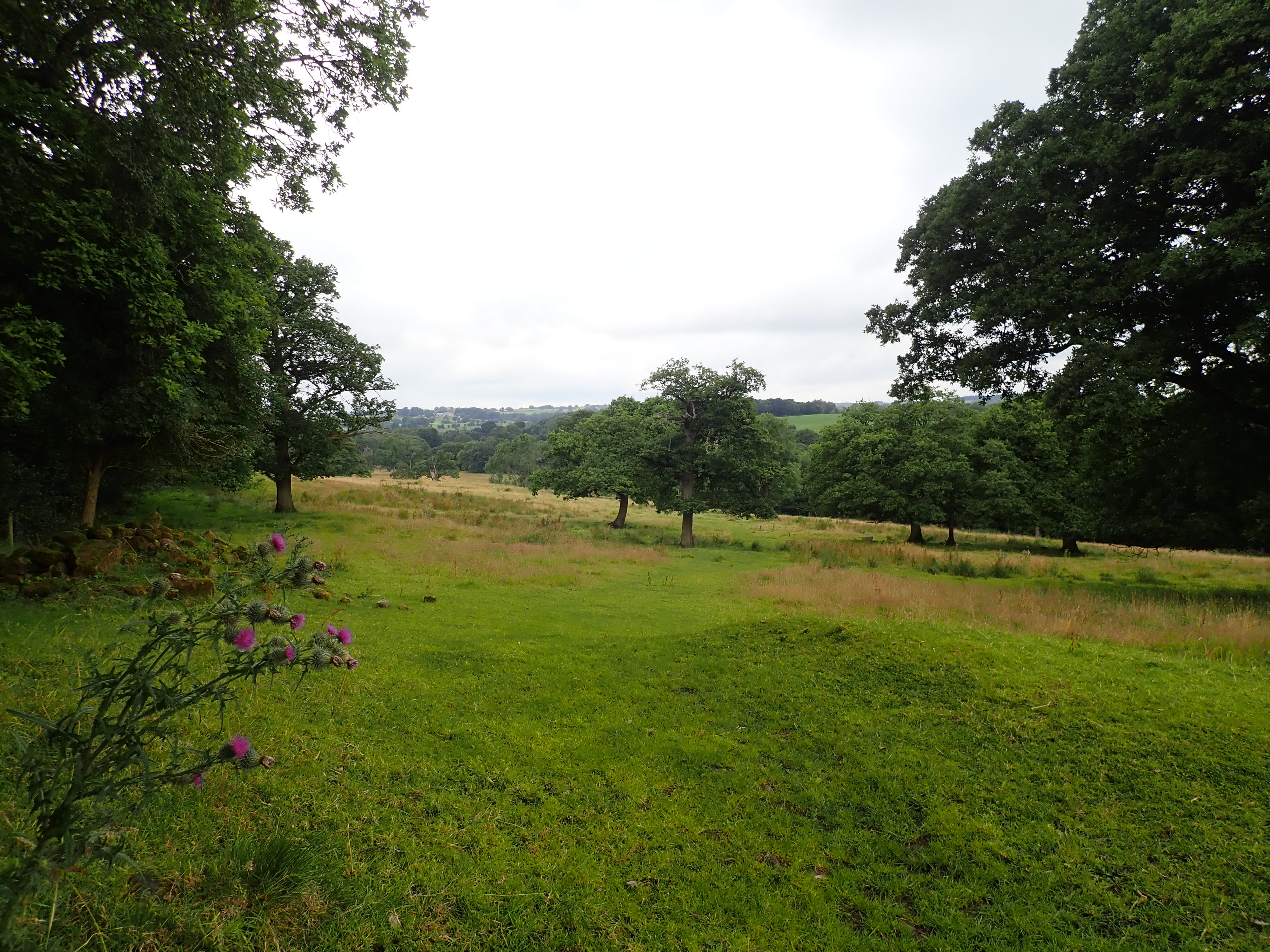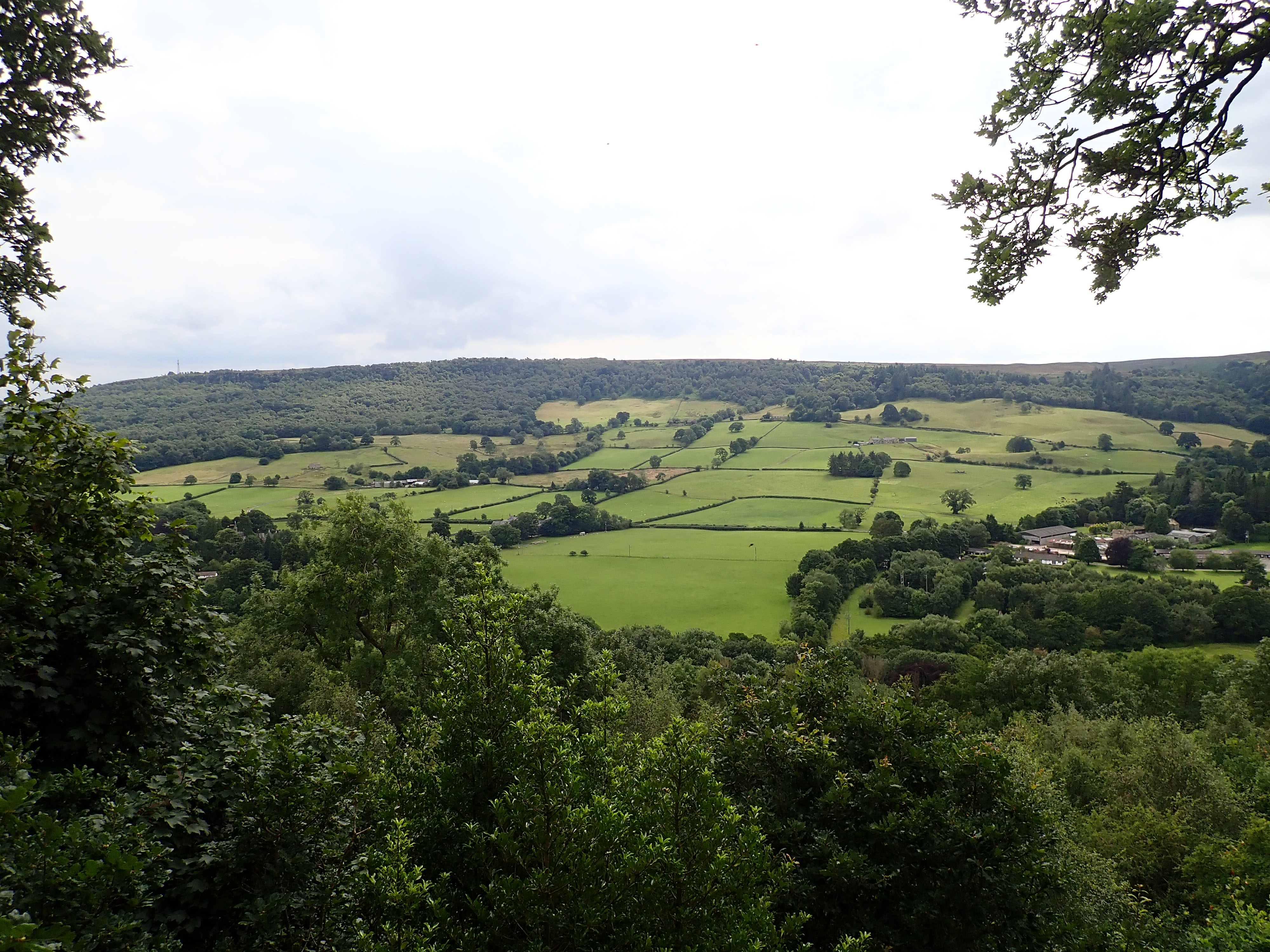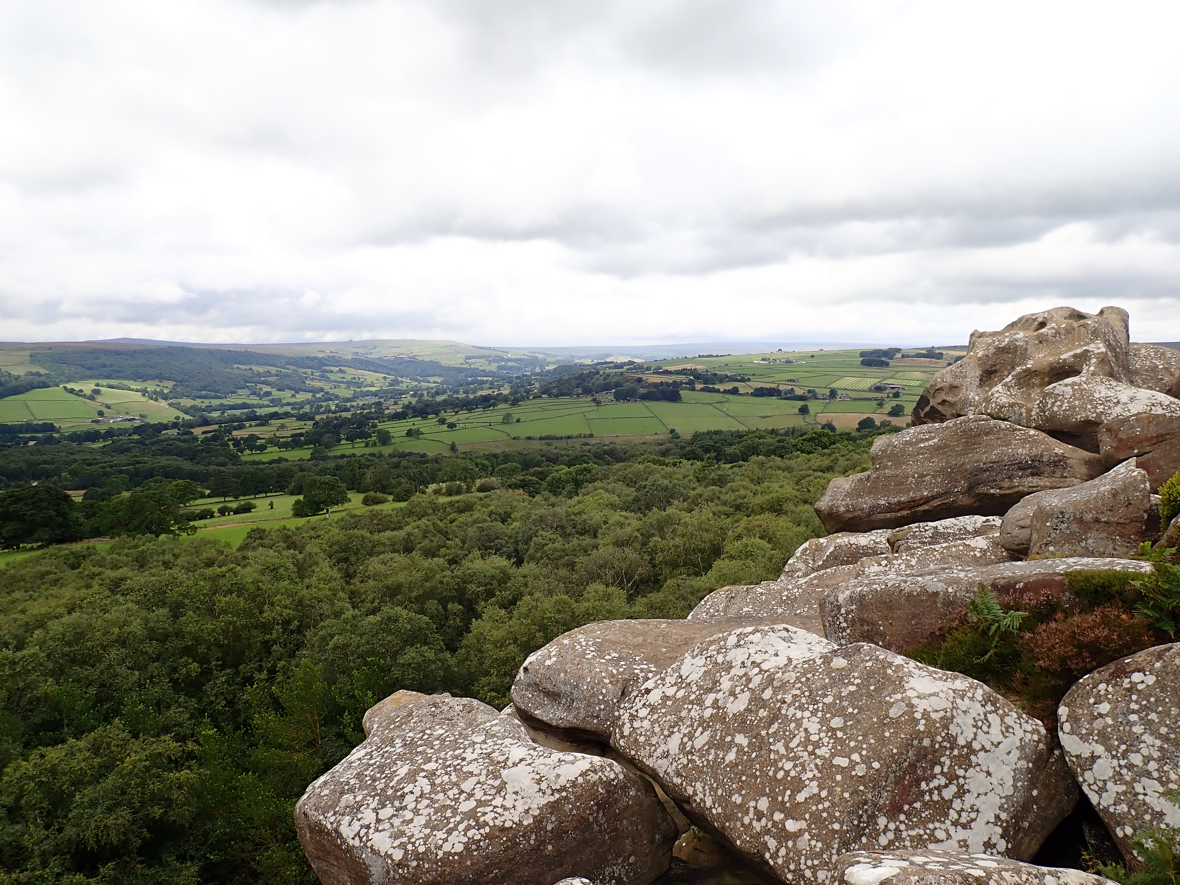 Lower Nidderdale from Brimham Rocks. Guisecliff and Heyshaw Moor are on the other side of the dale on the right. Dacre Banks is partly visible beyond the woods (look for a road heading away from the camera). Menwith Hill is in the far distance on the left.