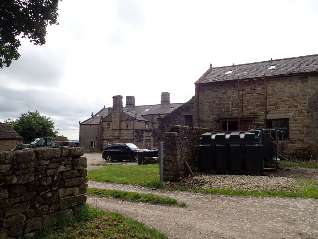 The Nidderdale Way gets more interesting as it gently climbs through fields and woods to the access track that runs into the rear of Brimham Lodge. This access track passes interesting farming remnants, including a dilapidated toilet portacabin that is gradually disappearing into the undergrowth, a graveyard of lichen-covered tyres, and a car that looks like it is gradually being eaten by grass. It’s a strange contrast with the attractive old stone buildings and modern barns of the farm that the Way then goes past. Brimham Lodge is an impressive building that was built in 1661 on the site of a former grange for Fountains Abbey. It has a commanding view over Lower Nidderdale, as well as a puzzling cluster of large masts and aerials sitting out front.