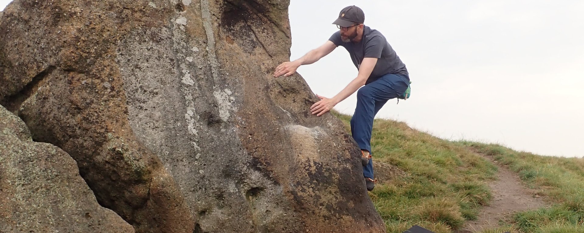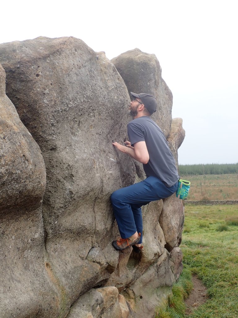 A few months ago, I walked around the small crag of Little Almscliff. I’d climbed a lot at Almscliff and wanted to see what bouldering on its diminutive namesake offered. It was clear that Little Almscliff has a lot of interesting and easier climbing, as well as great views and a short walk-in. However, I’d not been back because I had been focused on my walking project, and a rainy summer had limited my opportunities to get out. Last Sunday, my wife, son and I wanted some quiet climbing and time in the countryside, and so decided to head to Little Almscliff.