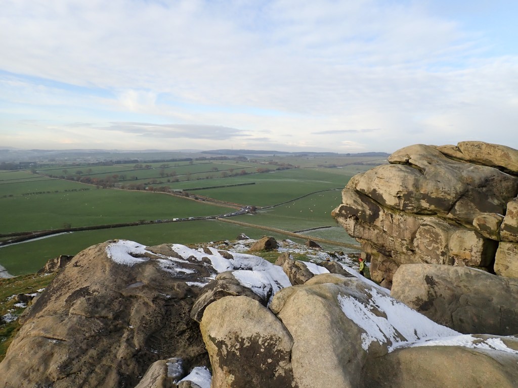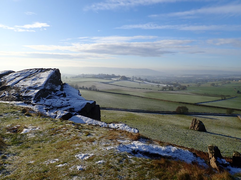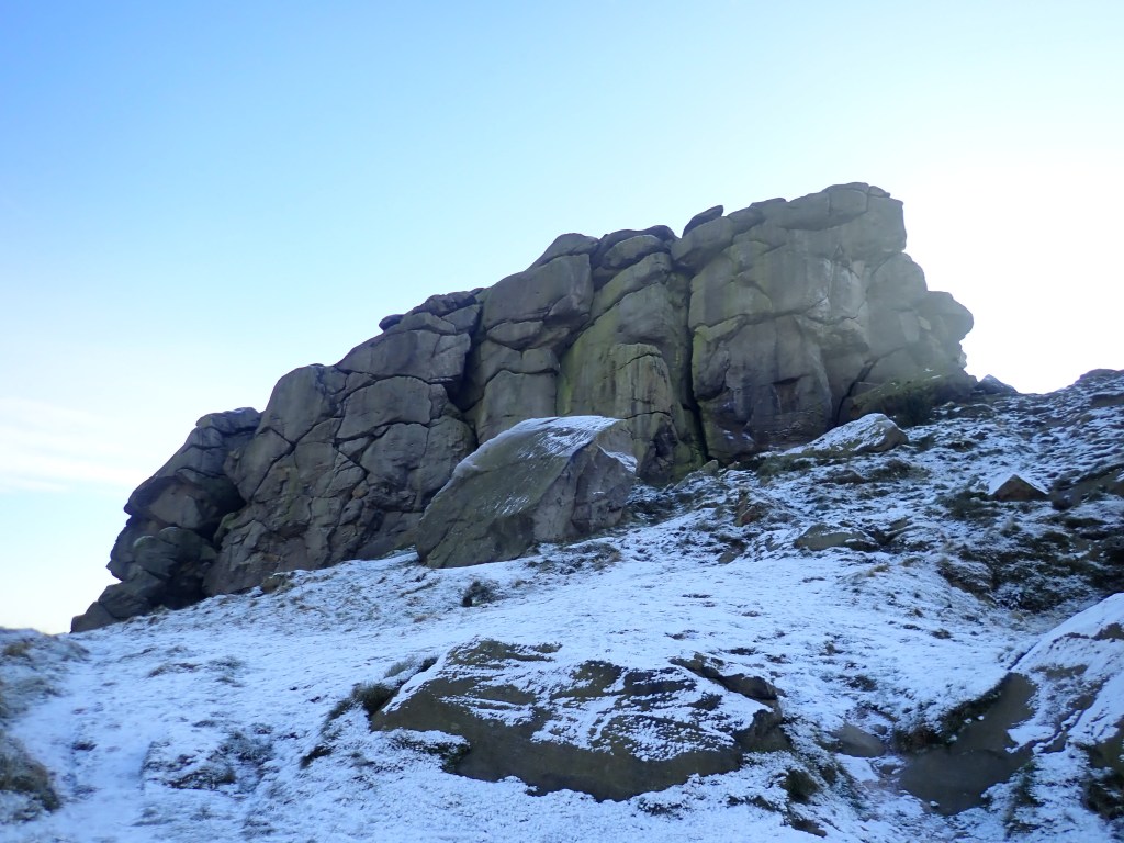 I decided to finish my trip by seeing if the cold weather would enable me to get up a problem that I had repeatedly failed to climb. It’s said that gritstone has more friction in the cold, and I hoped that this would mean that this would be the day I succeeded in climbing the problem Jemima. I have a disheartening relationship with this climb. The grade of Jemima is so low (it’s only a 3) that I should be able to get up it even on a bad day. However, there is something about this problem that has kept defeating me. I have wondered if there is something about the moves that I’ve been missing, or if there is a fault in my technique. Unfortunately, it seems that the temperature of the rock was not the thing that had been lacking, and I will just have to try this problem another time. Hopefully, it will be on another clear, frosty day.