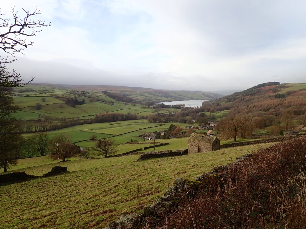We picked up the embankment of the Nidd Valley Light Railway and walked along it through wet fields. Ducks were enjoying themselves where the fields had flooded. The path then kept close to the tree-lined Nidd, and we followed it into Pateley Bridge for a hot chocolate and a visit to the Oldest Sweet Shop in the World.
