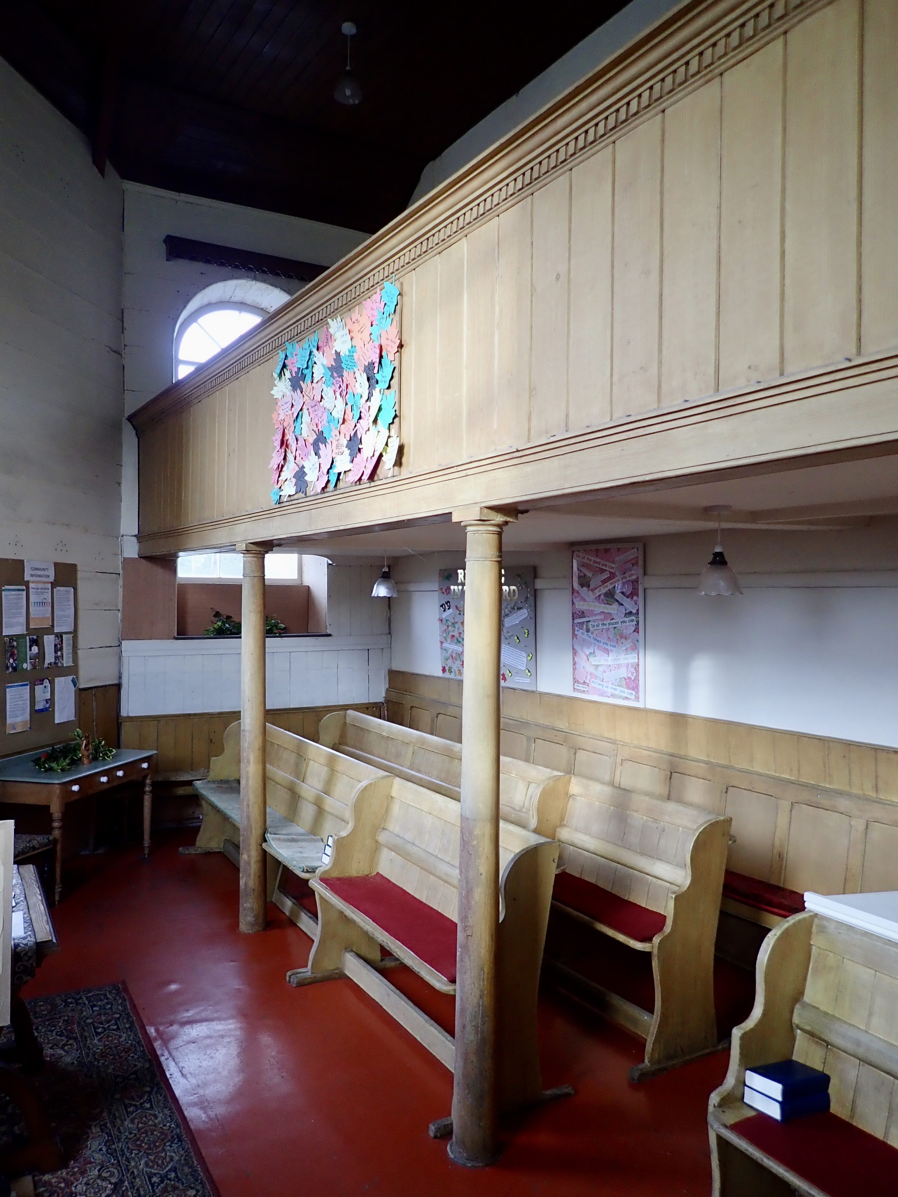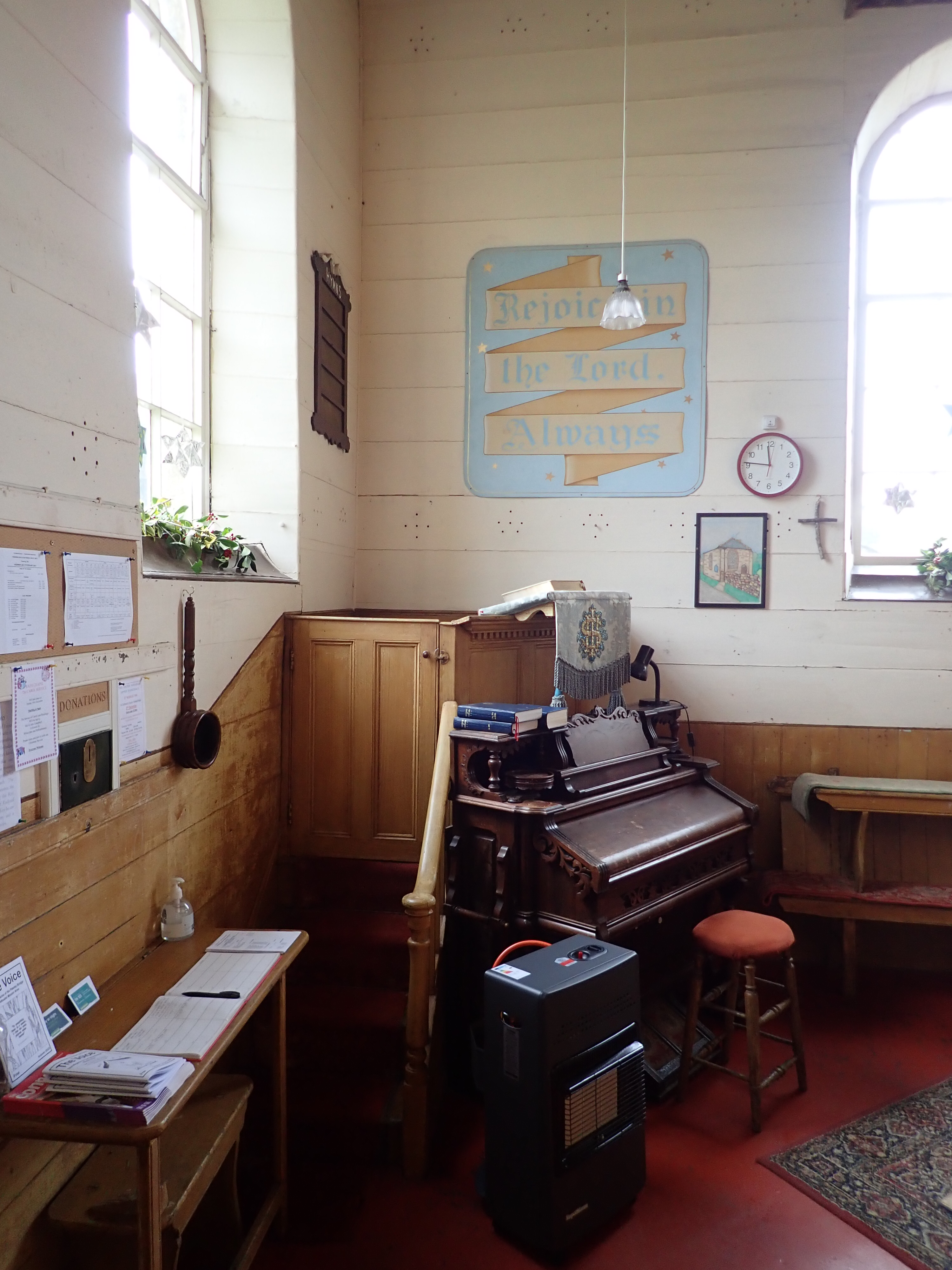 We stopped for a few minutes to visit Wath Chapel. This is a good example of how having to work within certain constraints can lead people to produce something unique and wonderful. To fit onto the land which had been given for its construction, Wath Chapel is small, with five unequal sides, and sits at the end of a terrace of cottages. Inside, its double-height single room has a pulpit and a miniature organ in one corner, facing this are three rows of closely set pews and another set of pews on a wooden balcony immediately overhead. This ingenious arrangement allows the chapel to seat over 100 worshippers.