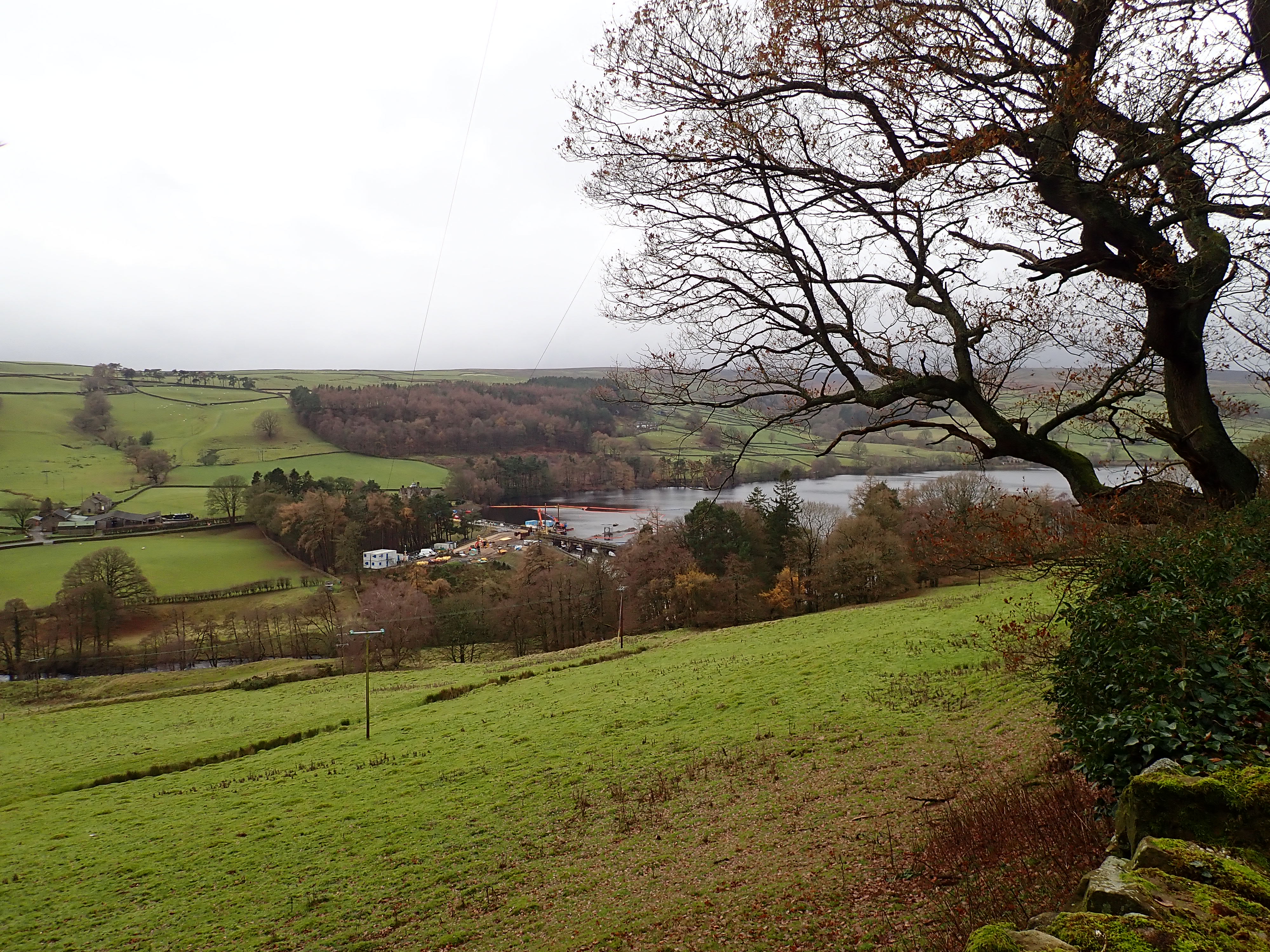 It was about here that we started to hear the roar of water coming from Gouthwaite Dam. This came into view as we moved out of the woods, as well as major building work being done around it. We continued down the dale along a wall-lined lane until, we took a sharp left to head downhill to the dam. I was familiar with this section of the walk because from here to Pateley Bridge it took the route of the Nidderdale Way, which I had walked earlier in the year.