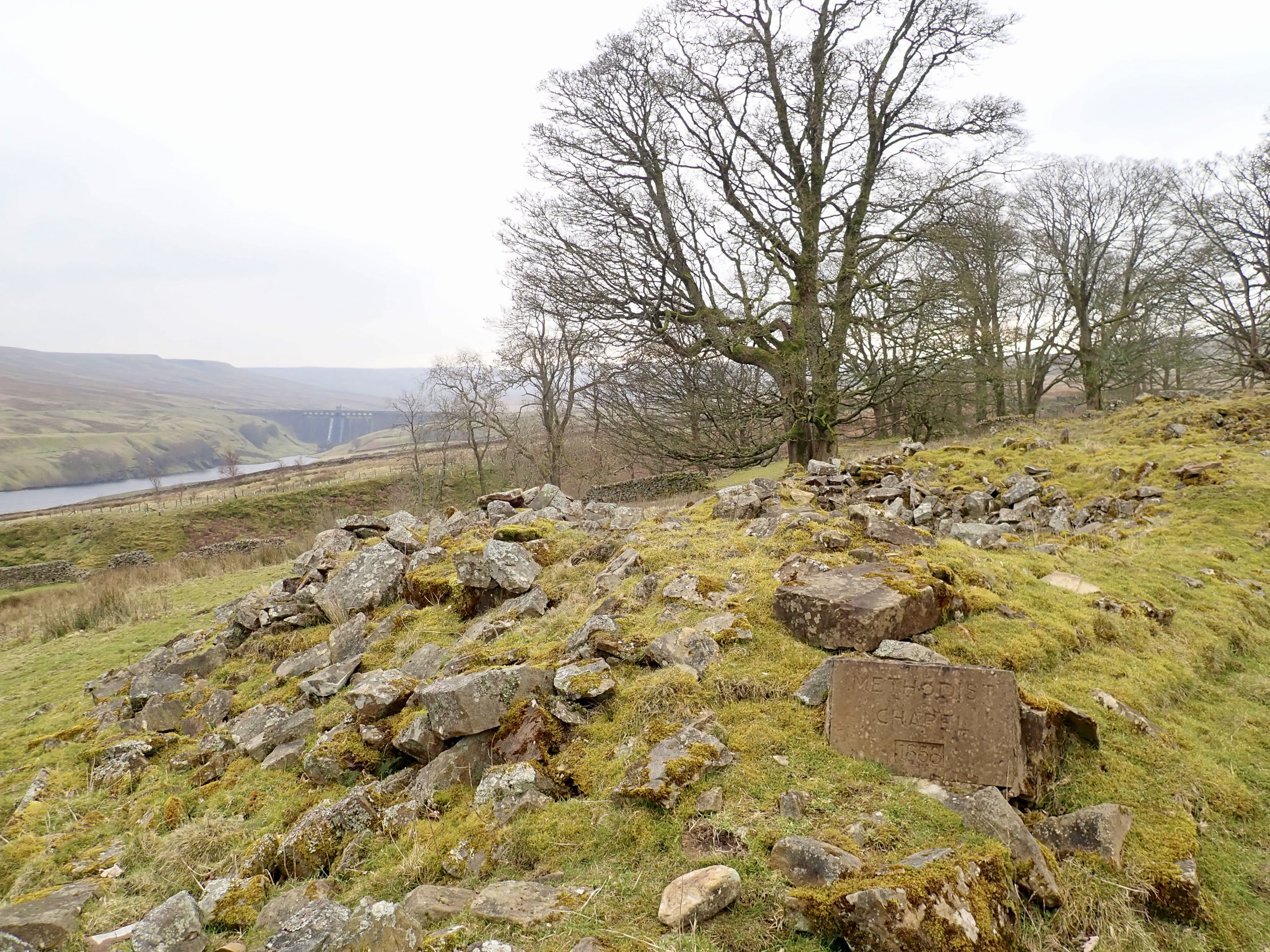 The remains of the Methodist chapel in Lodge. Angram Dam is in the distance.