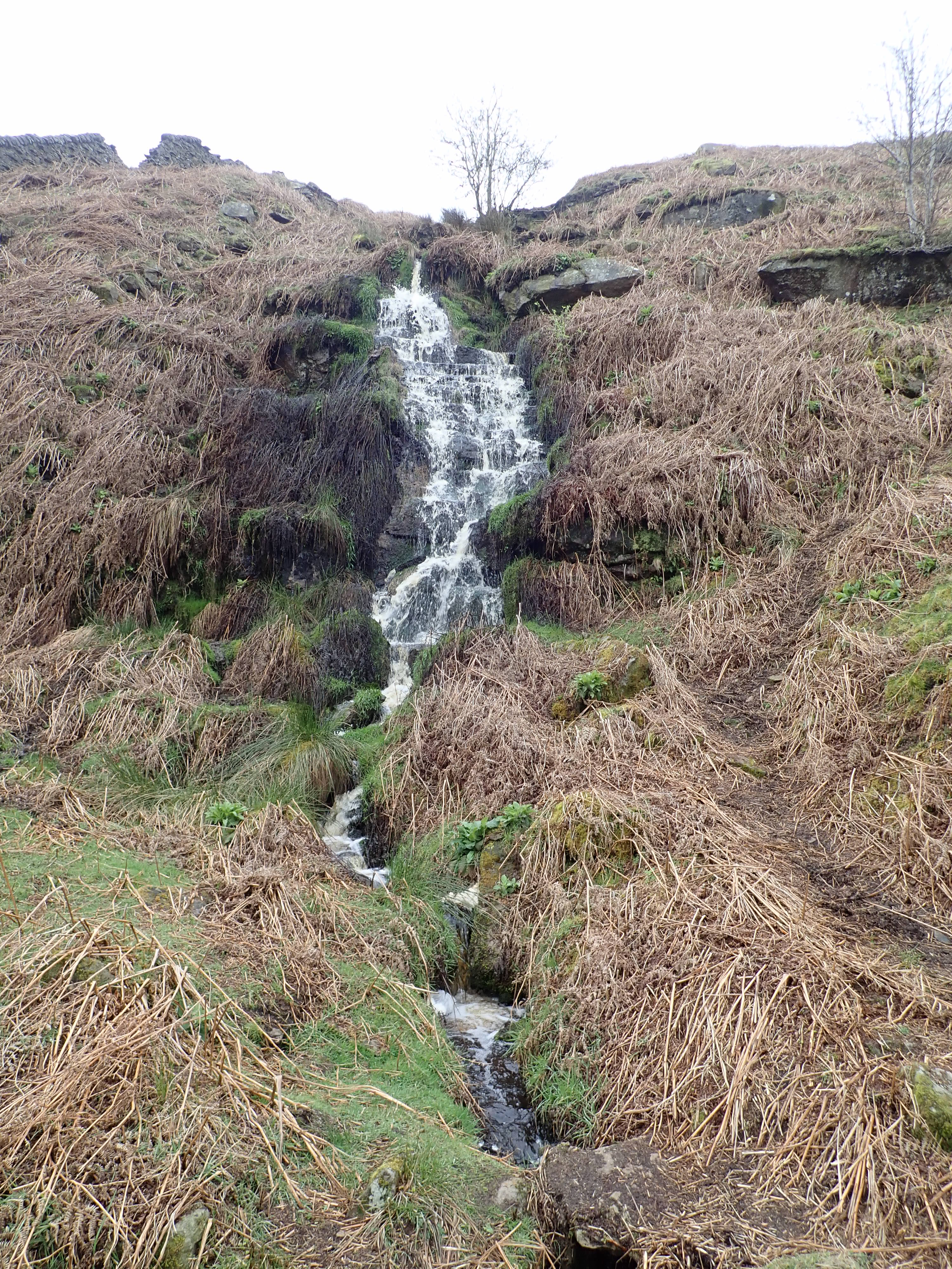 The road stayed close to Hebden Beck as it passed pastures criss-crossed with drystone walls. As the lane began to move from away the beck, I took a quick detour across a field and back to the stream to see the attractive Scale Haw Falls (AKA Scala Falls). I then returned the way I had come to carry on along the lane into Hole Bottom.