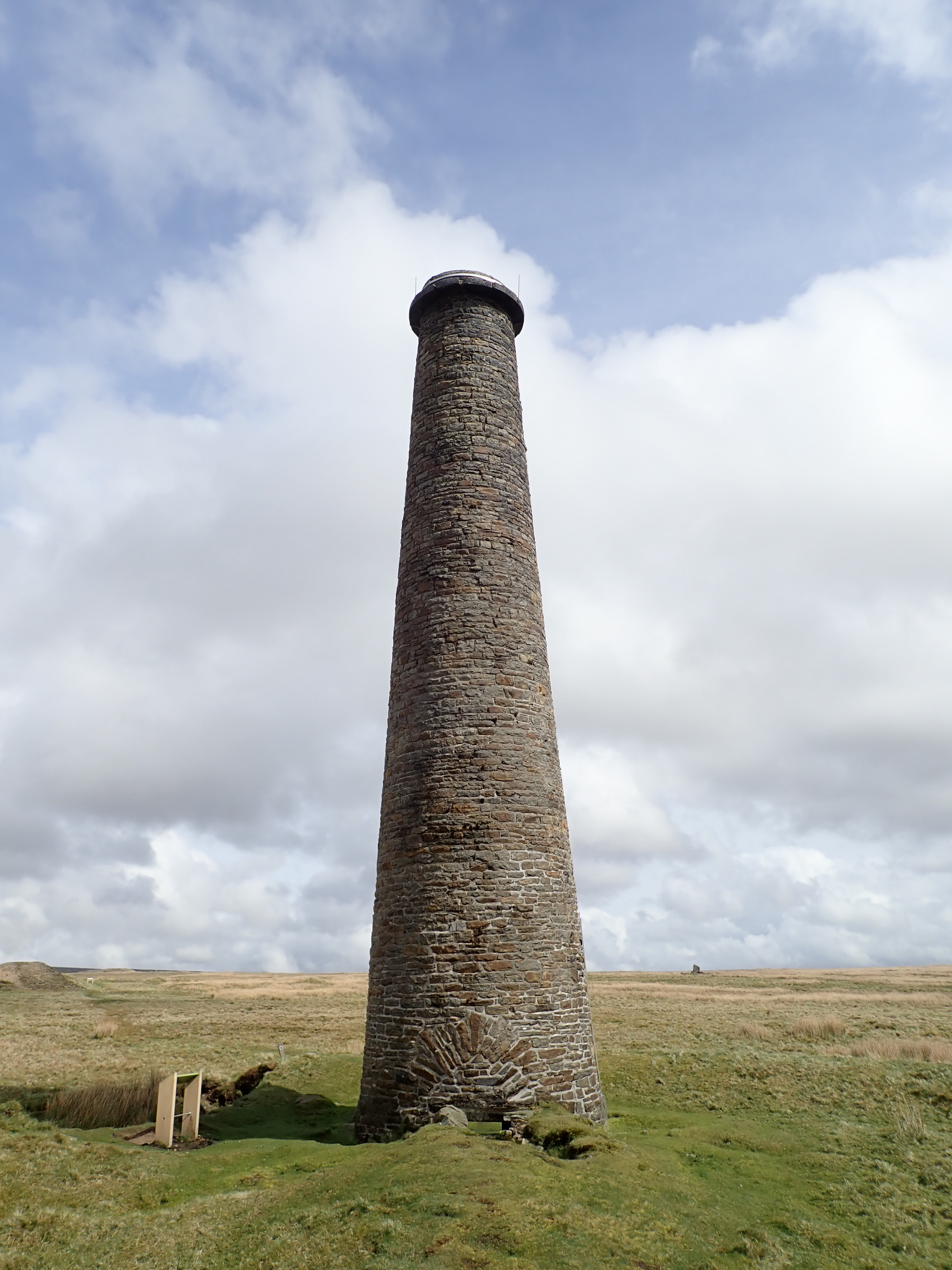 Via the Duke’s New Road, I then made my way across the moor and over a large dam that had been built across the stream. The New Road then headed up the slope of the moor to the remnants of the Cupola Smelt Mill. The construction of this smelt mill in 1792 was apparently a major development in the history of mining on the moor. Previously, peat and wood were used to fuel the hearths that heated the ore to obtain the valuable metal. These were replaced with two coal-burning reverberatory furnaces (these worked by keeping the ore kept separate from the burning fuel).