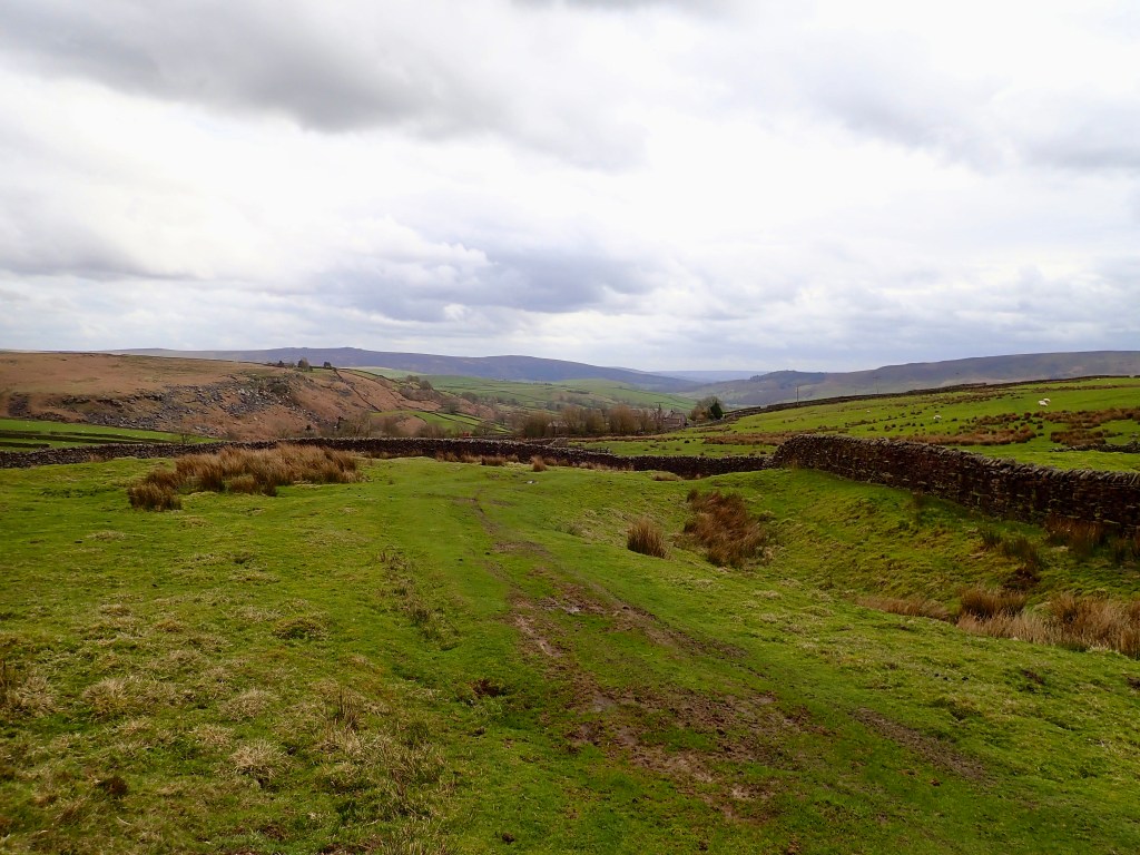 The track led on through a gate to taller spoil heaps at the junction of Hebden Beck and Bolton Gill. I dropped down to Hebden Beck and crossed it by some stepping stones. The grassy path then got progressively narrower and muddier, before I re-joined the track at a ford.