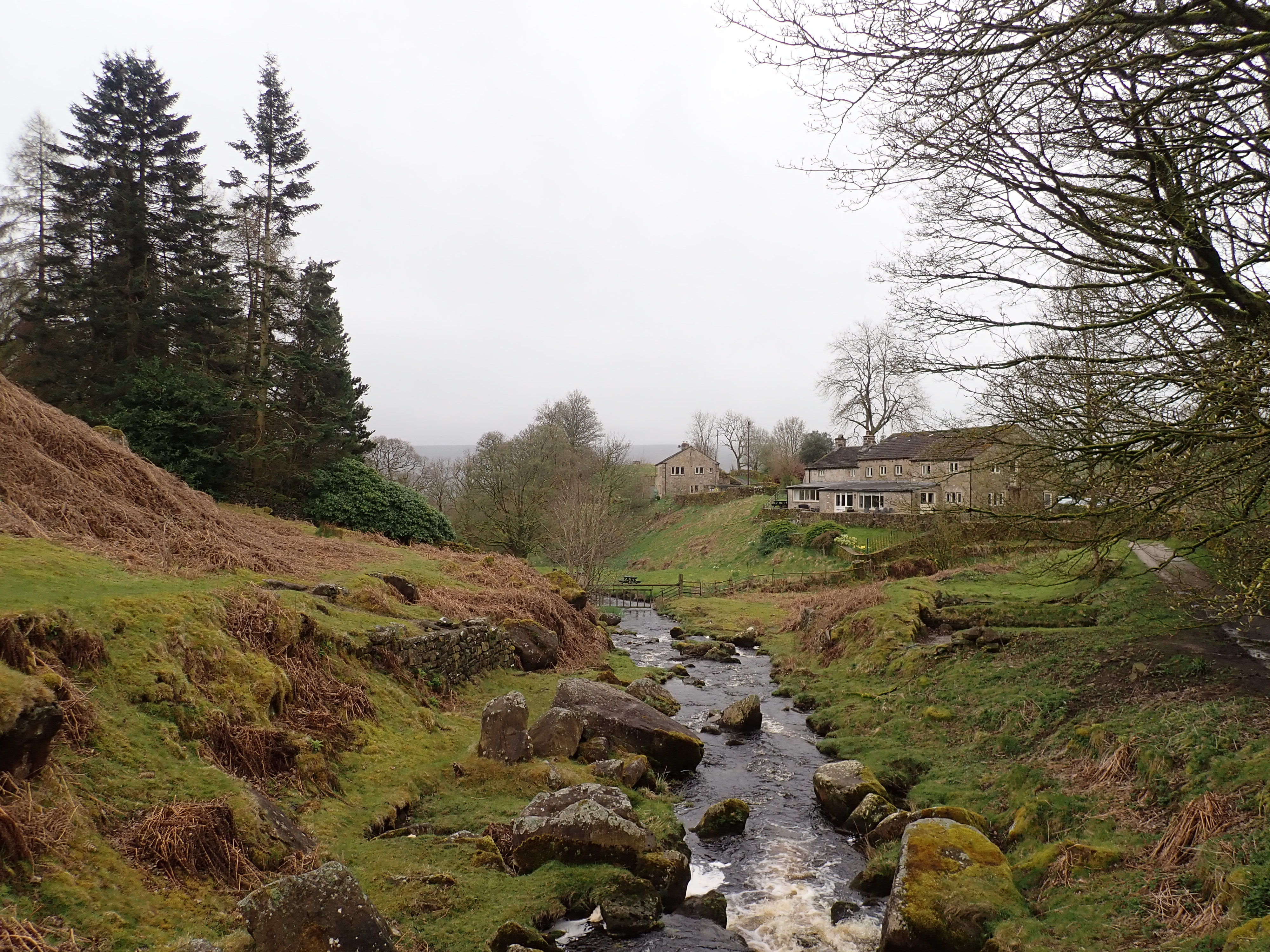 Looking back to Hole Bottom from the Miners’ Bridge over Hebden Beck.