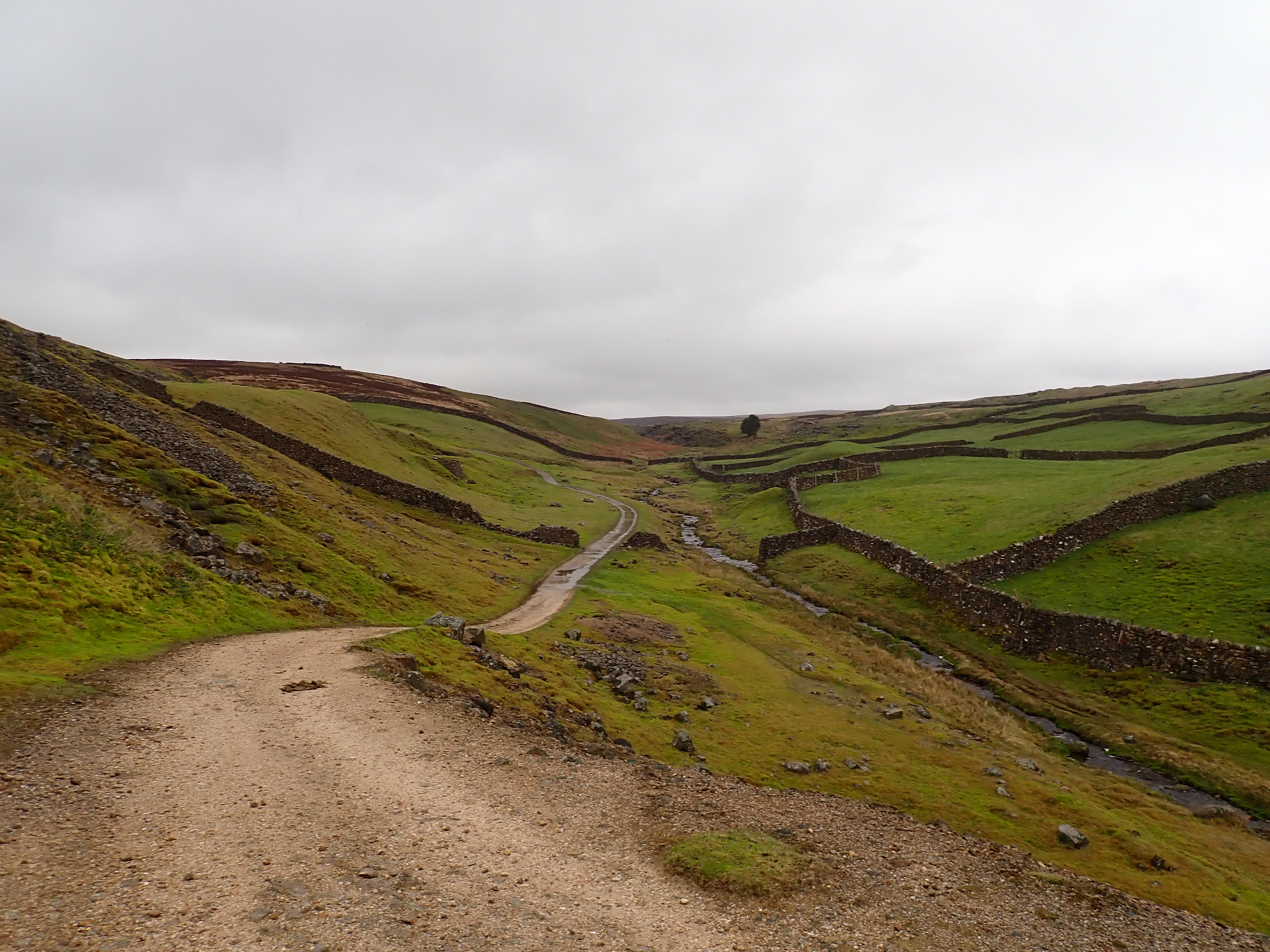 There used to be a mill at Hole Bottom. The remains of this can be seen in a small weir in Hebden Beck and, just beyond the holiday cottages, a series of low walls and stone-paved floors by the river’s bank. I passed these as I headed to a stone bridge, which, like the road running up the valley, had been built by miners to enable access to the workings. I took this route as I carried on up the valley.