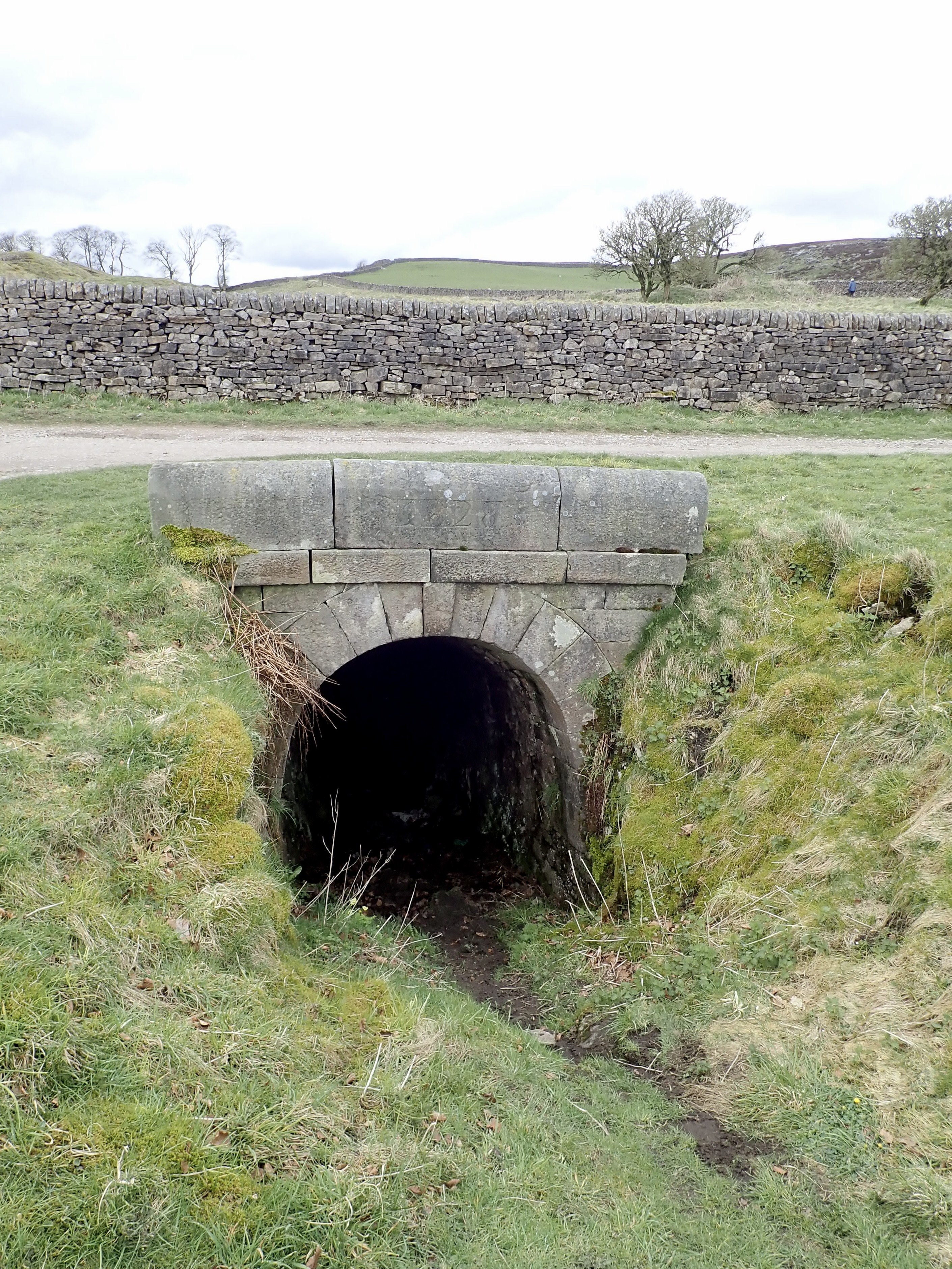 Yarnbury is a cluster of houses on a rough plateau on the edge of the mining area. I imagine that these buildings were once a large farm and/or were used by the mine operators. They now look like expensive homes. Next to the the rough lane that runs past Yarnbury is an impressive stone archway that is the entrance to an inclined shaft. This shaft goes under the lane and down to a depth of 37m, and was used as a means for horses to haul ore to the surface. This was my fascinating and last look at the mine workings as I left behind them to head over boggy fields to find Yarnbury Henge.