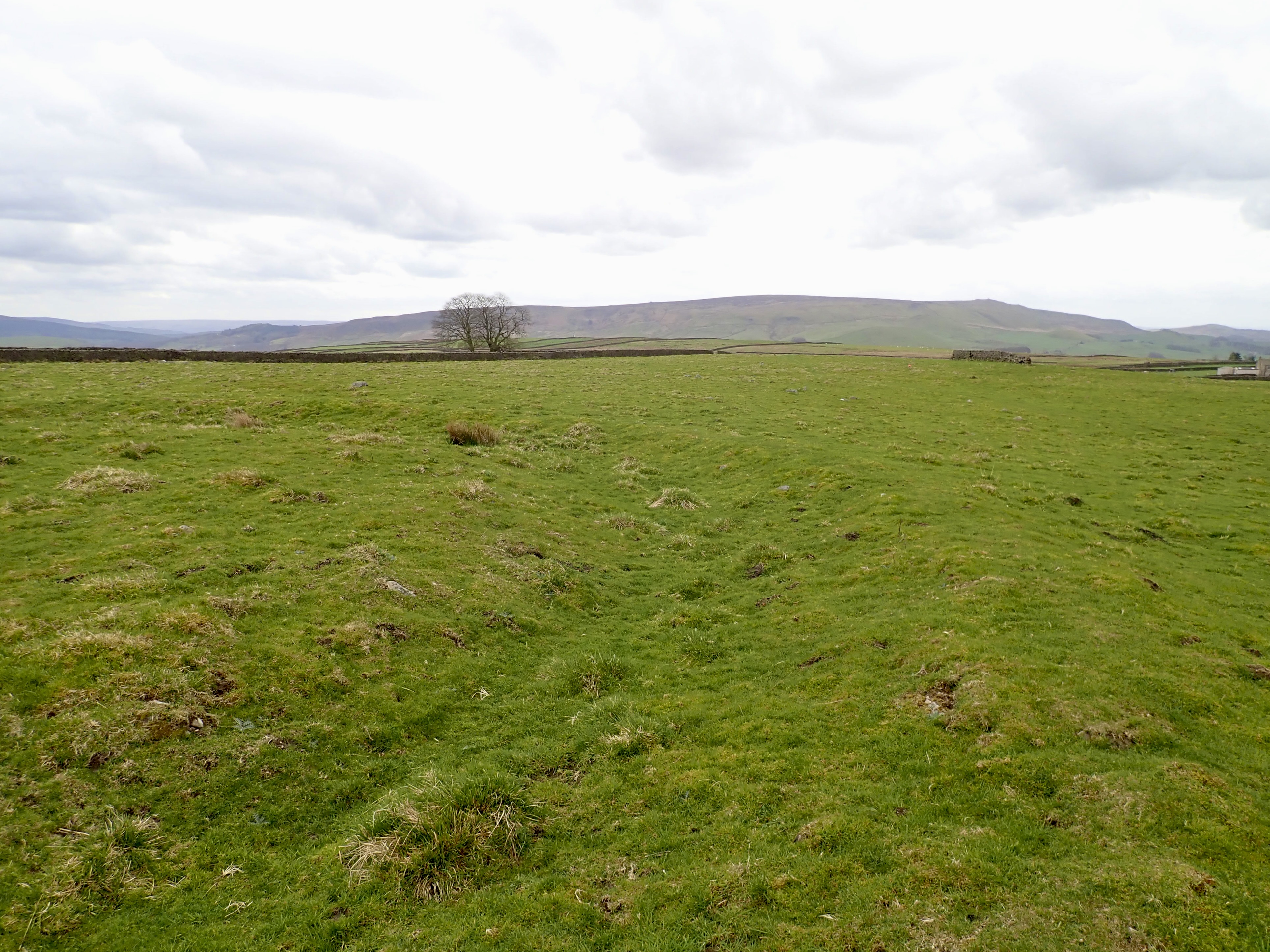 A view of part of Yarbury Henge, with Cracoe Moor in the distance.