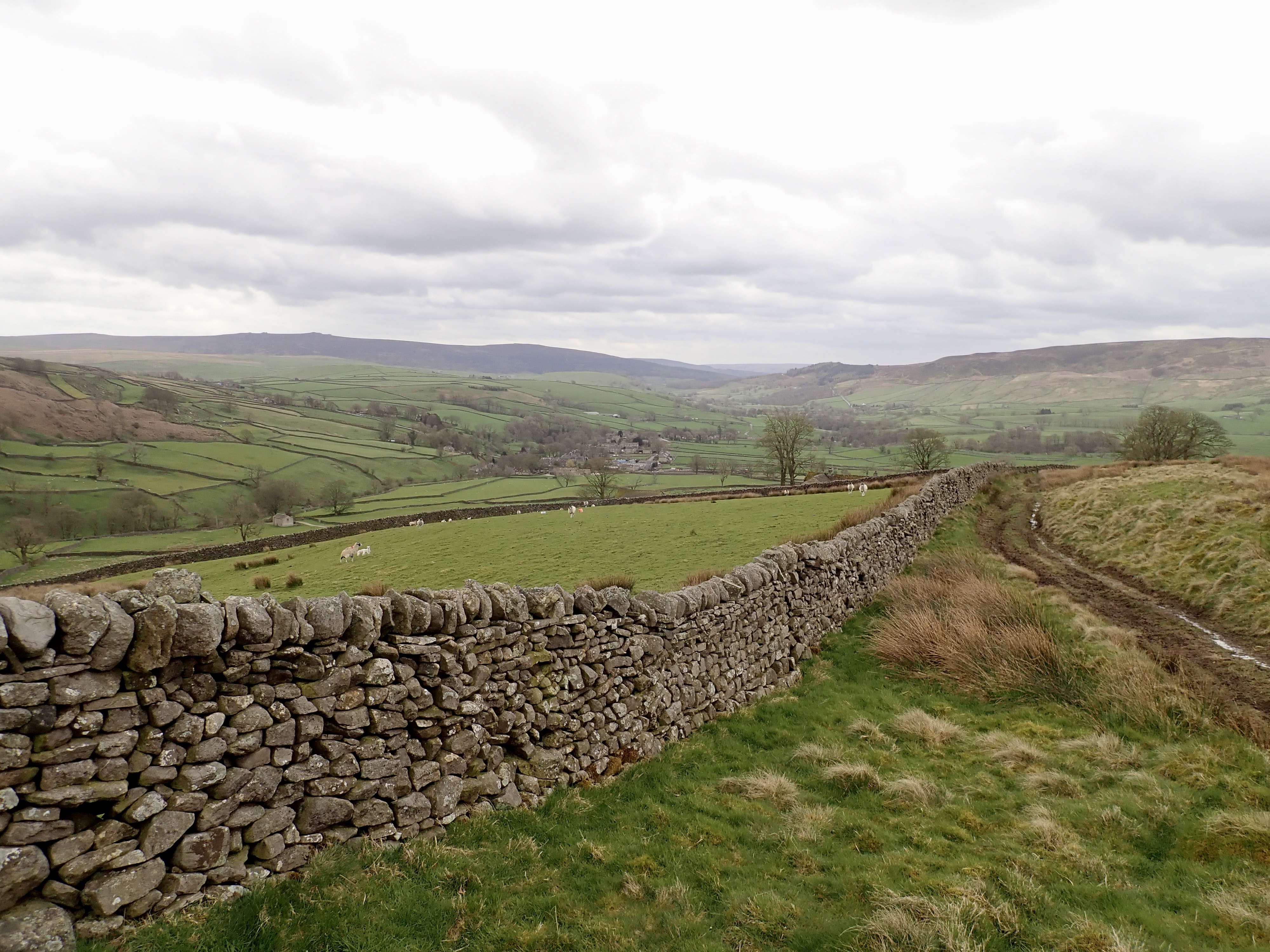 This route took me down the hill through wet, muddy fields and along rough tracks. On the map this had looked like it might be a long traipse through farmland, but I enjoyed it a lot more than I thought I would. The views down Wharfedale expanded as I got lower into the dale, oystercatchers and curlews flew around, and ewes with new lambs gave me hard stares to warn me off getting too close. I eventually squelched through the last field and through a gate into Hebden.