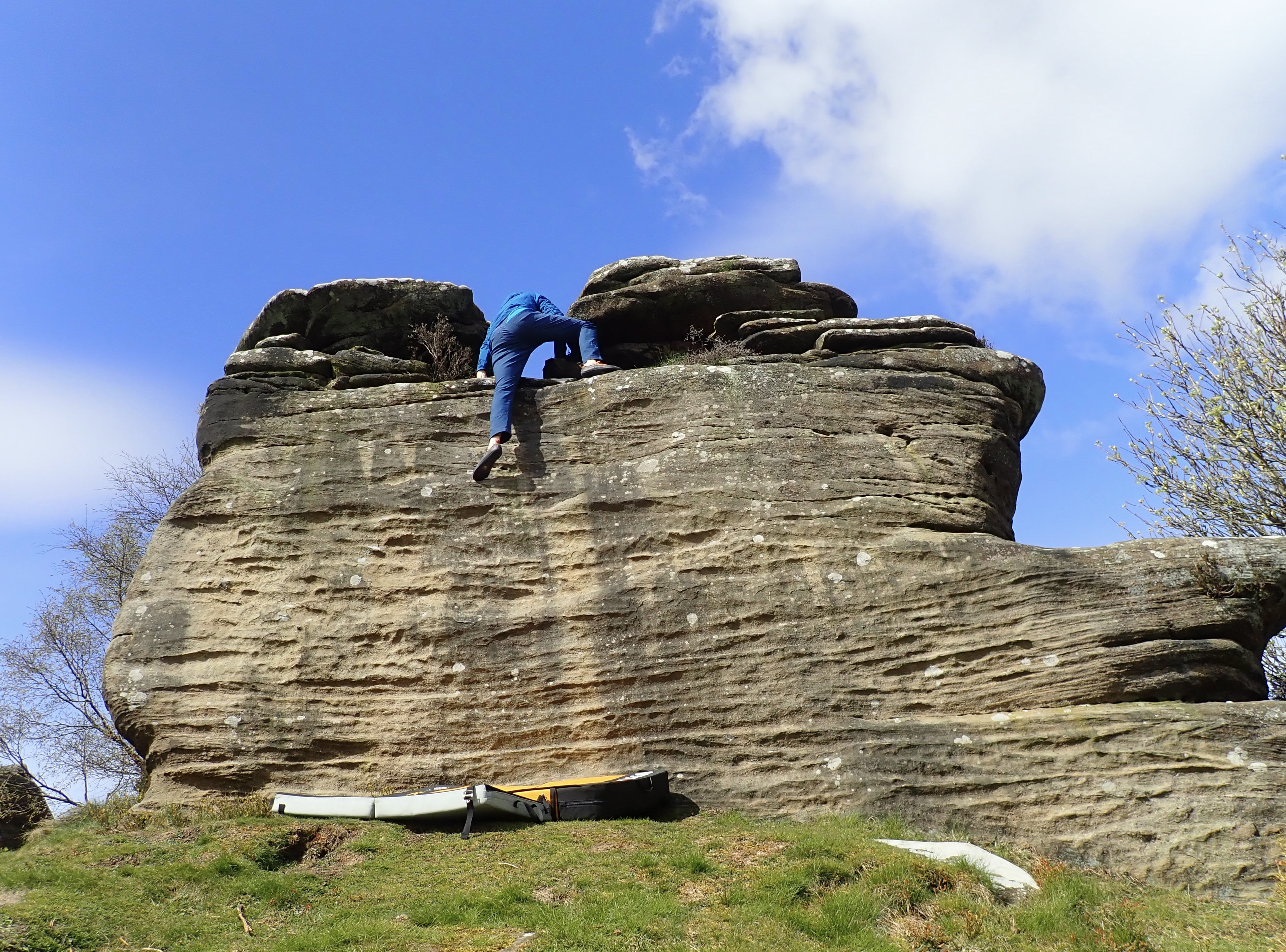 The winter that has just passed was a particularly difficult period for trying to rebuild my climbing skills and regain fitness. My opportunities to climb were curtailed by frequent rain as well as recurring colds and a bout of flu. As a result, my only outdoor bouldering had been a trip to Brimham in November and to Almscliff in December. Now it’s spring and I’m hoping there will be more chances to get out. The first such chance presented itself the Sunday before last, and I used this to head back to Brimham Rocks.