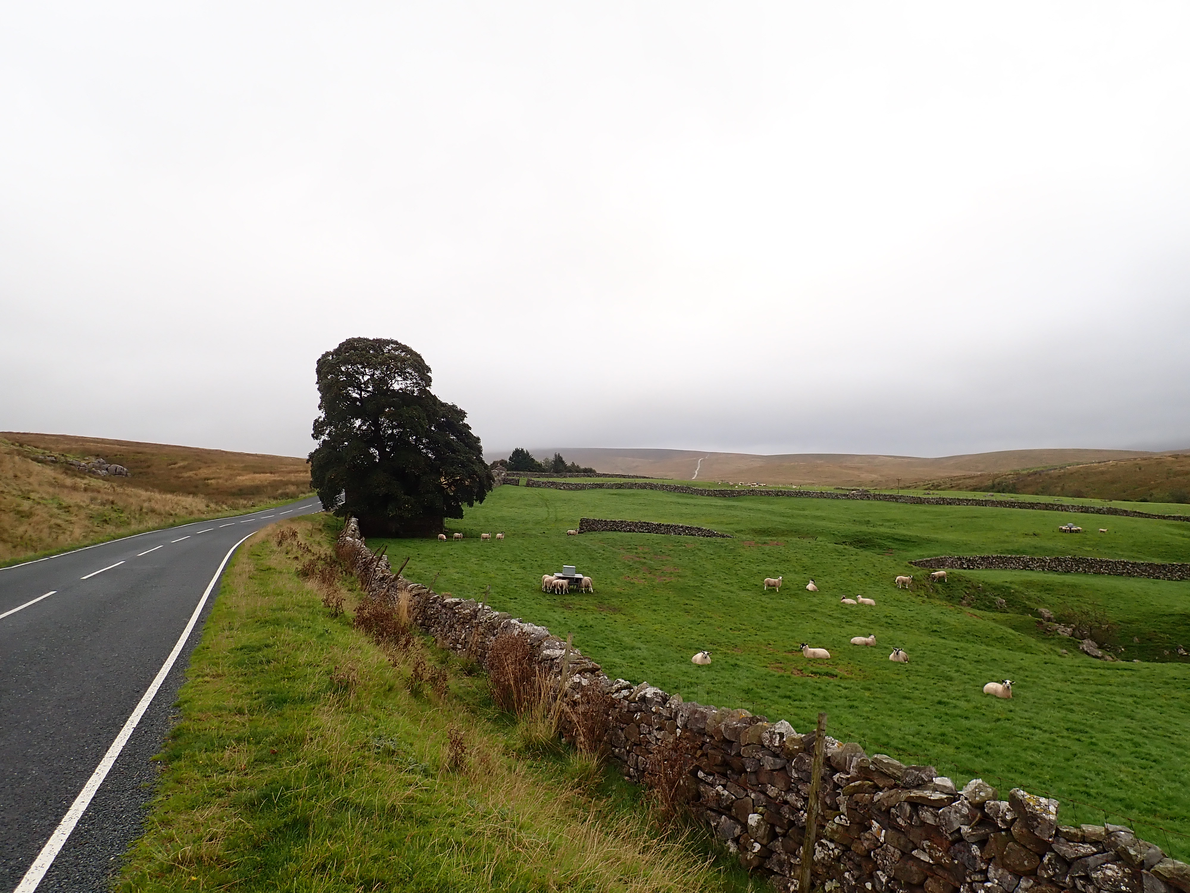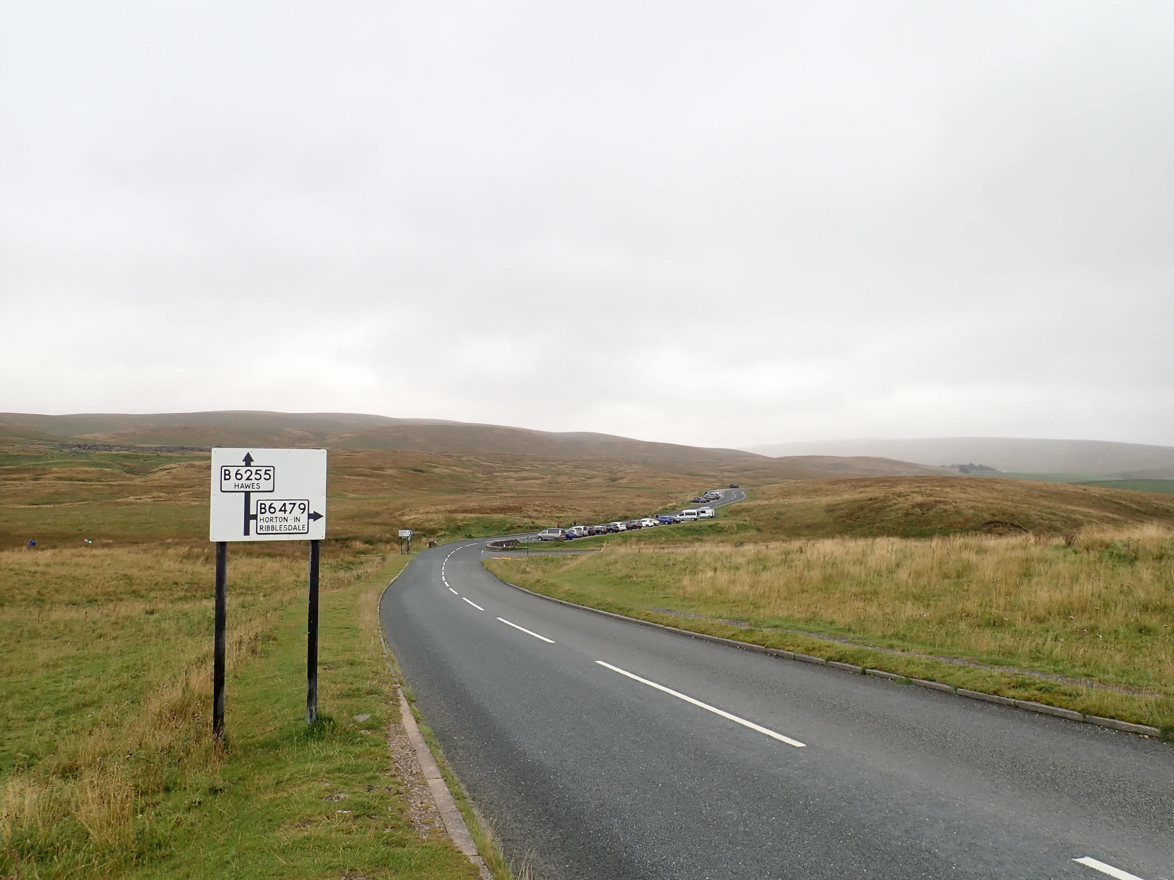 This was the part of my walk that I thought was likely to be the most uninteresting and might even be unpleasant. This is because the most direct and straightforward way to get to the other side of Ribblesdale was to walk along Blea Moor Road (the B6255). It’s a relatively busy road and drivers tend to take it quickly. Thankfully, it was straightforward to walk on the verge and most drivers gave me extra space. As the cloud began to lift, I could also enjoy views of the impressive Ribblehead Viaduct, Ingleborough, and down Ribblesdale. Although the walk seemed longer than it probably was, I eventually stepped off the Blea Moor Road onto a substantial track heading up onto Cam Fell.