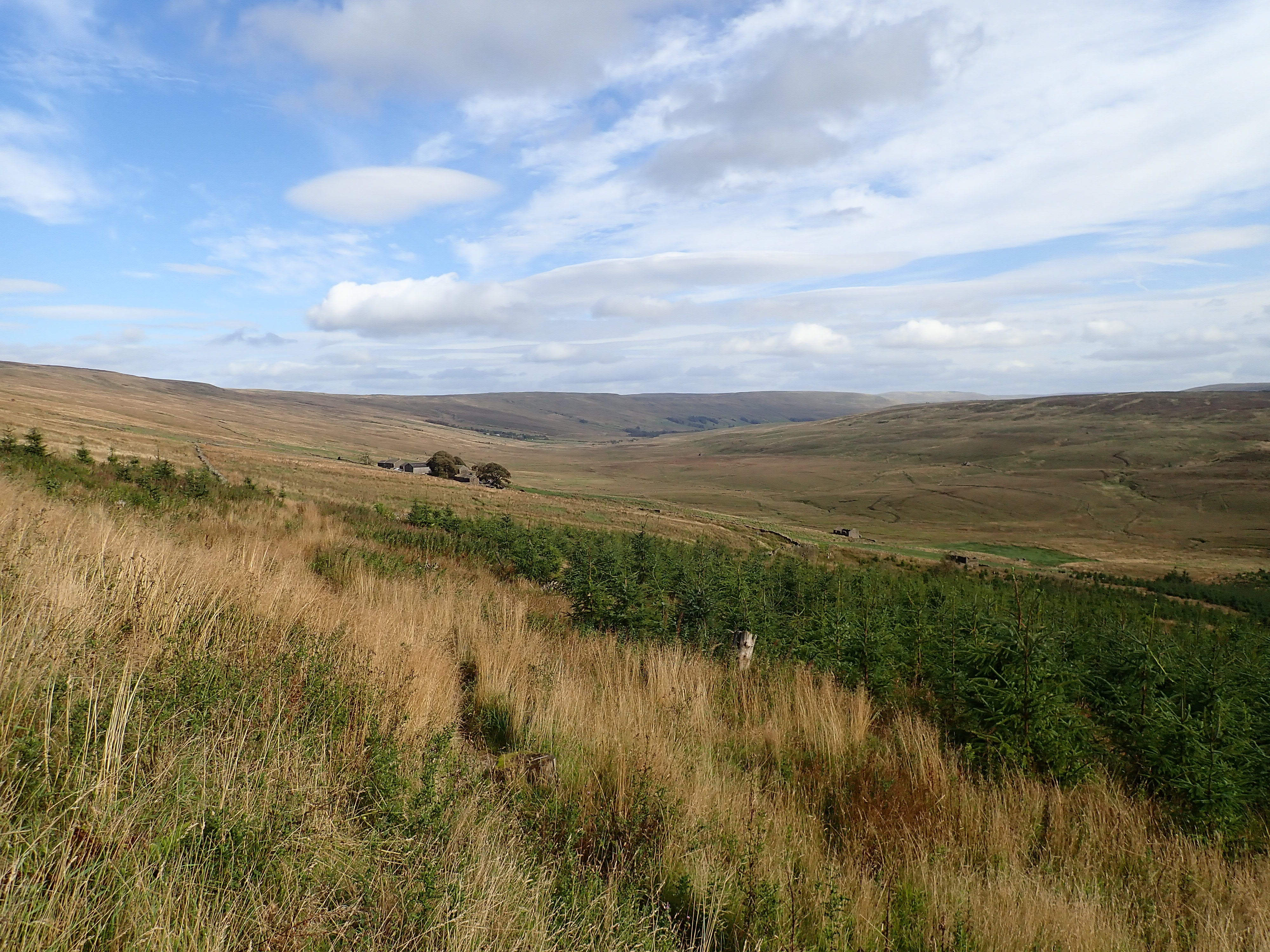 There’s a forestry plantation that runs across the head of Langstrothdale here, and it was as I came close to it that I made a navigation error. When I was back home and tried to work out what had gone wrong, I found that the map that I had been using was 15 years old and didn’t include tracks running to, and through, Cam Woodlands. My mistake had been to take one of these tracks down from the moor instead of continuing along the Dales Way for a bit longer, and then descending. It was a frustrating, confusing, and time-consuming mistake. In the end, it was a gamekeeper in a passing Landrover who kindly pointed out how to correct my error.